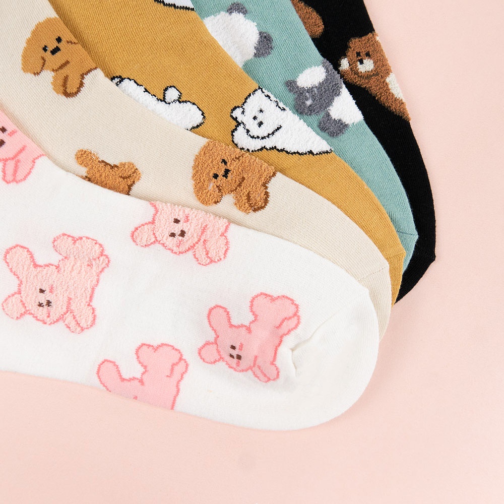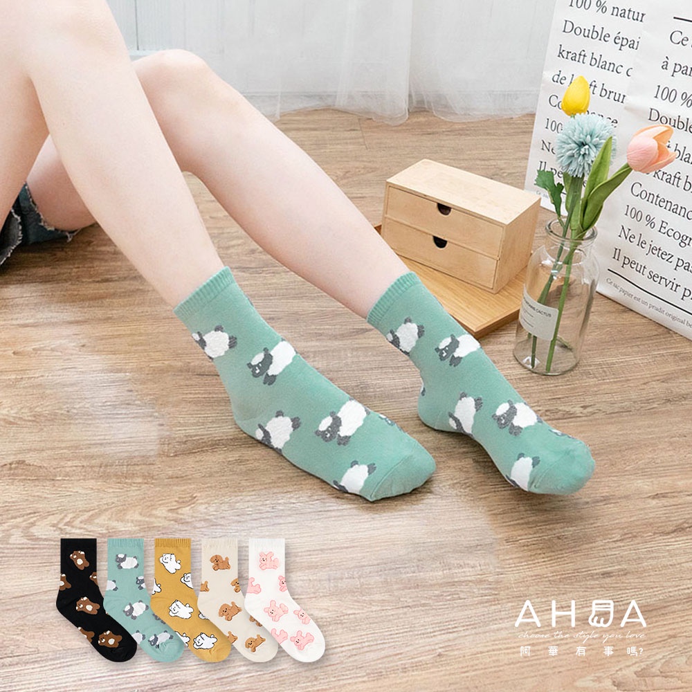 AHUA阿華有事嗎 韓國襪子 滿版飛奔小動物毛毛中筒襪 K1522 印花 女襪 中筒襪 百搭純棉襪