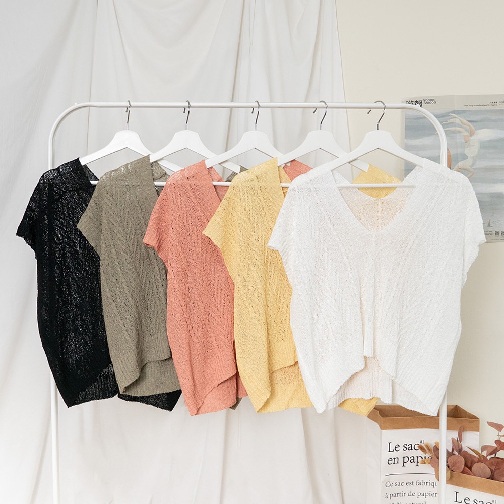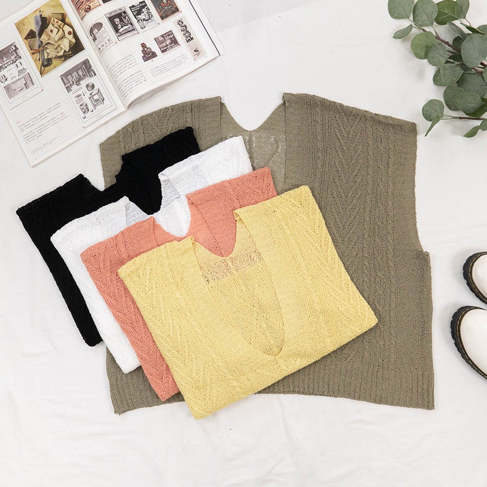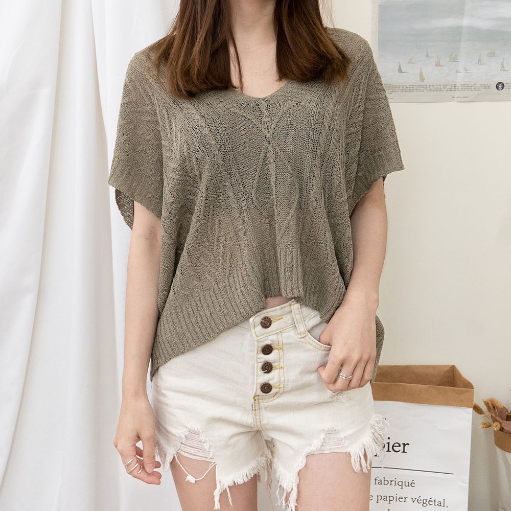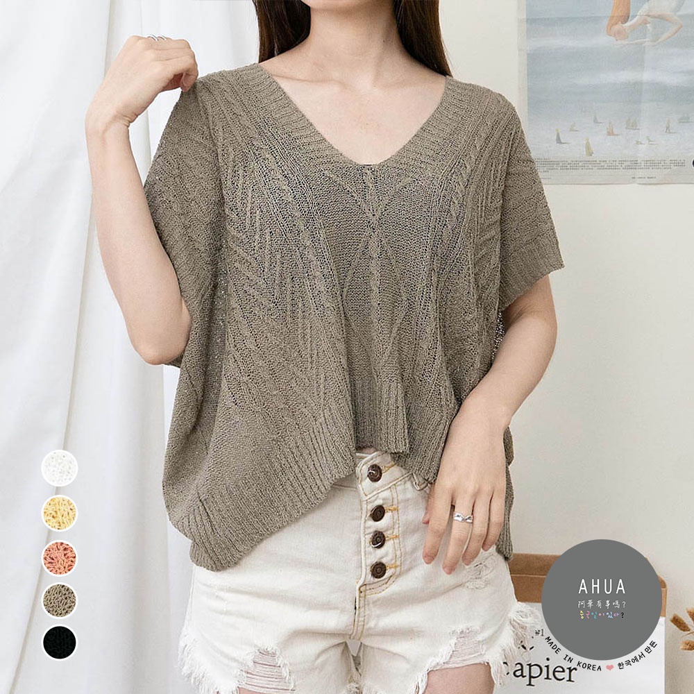 AHUA阿華有事嗎 正韓女裝 透膚麻花V領針織落肩上衣【C1967】顯瘦 清新 百搭 實穿 休閒 韓妞必備 基本款