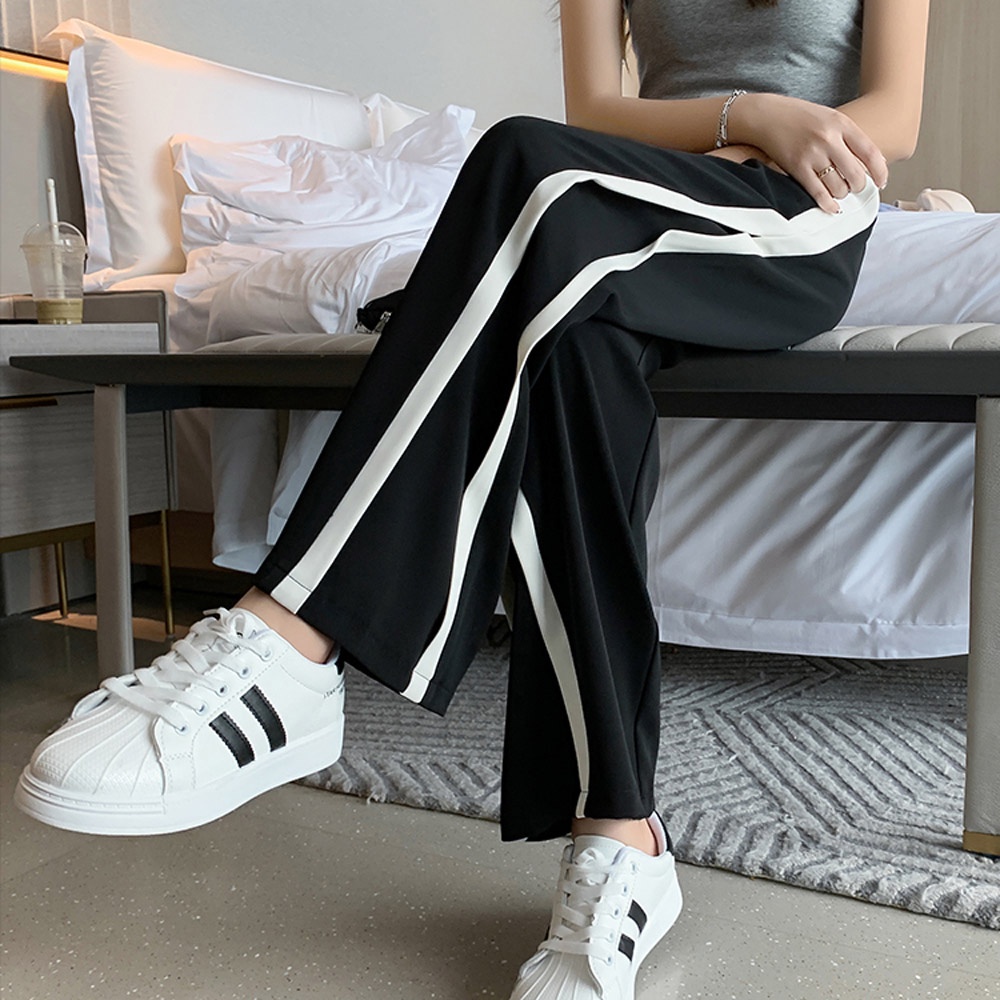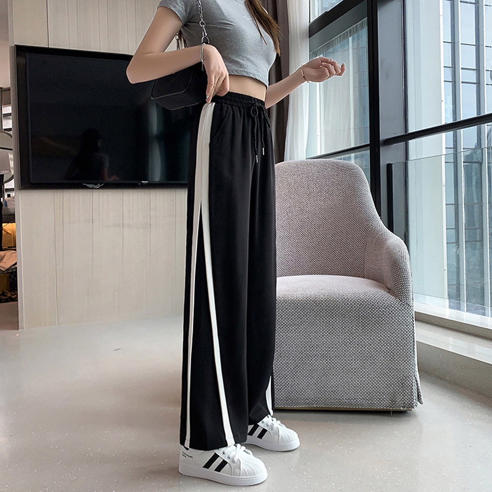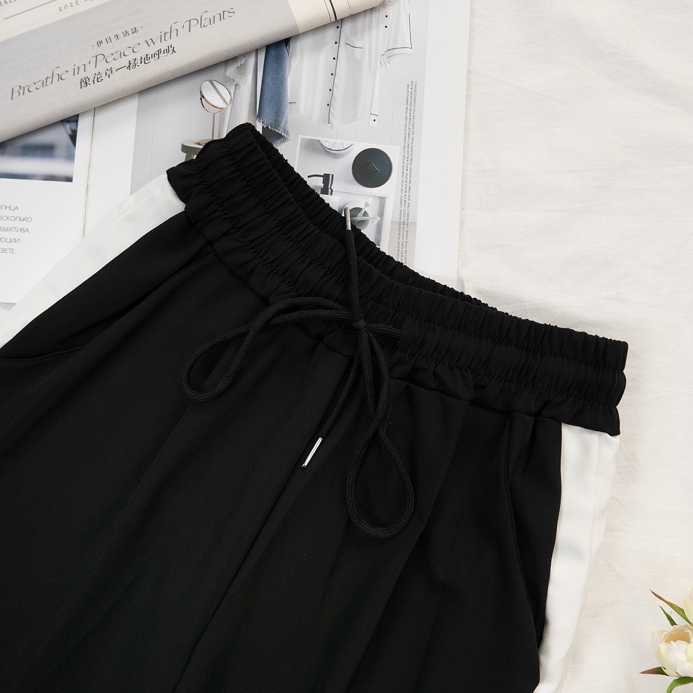 AHUA阿華有事嗎 韓系女裝 雪紡白邊修身長褲【C2444】鬆緊腰 百搭 寬鬆 透氣 舒適 基本款 長褲 韓妞必備