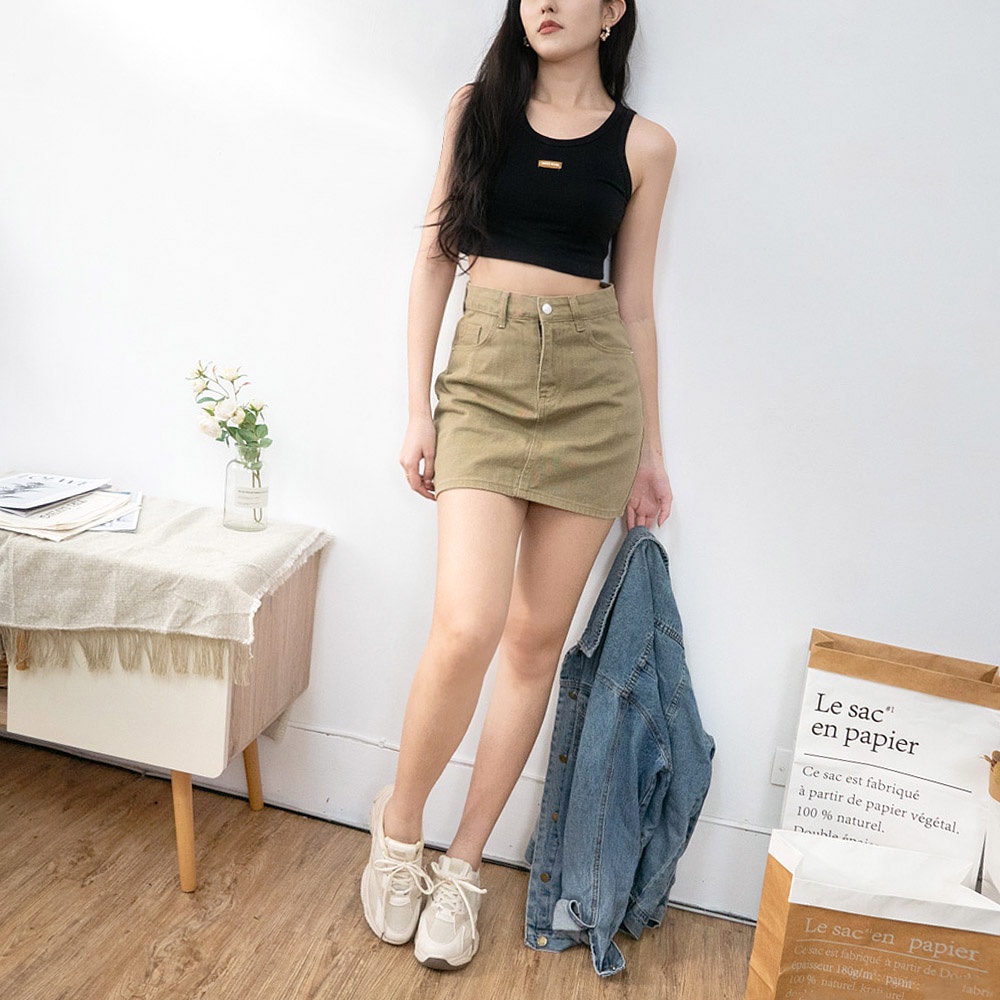AHUA阿華有事嗎 韓系女裝 高腰純色A字短裙【C2436】簡約 高腰 顯瘦 牛仔 短裙