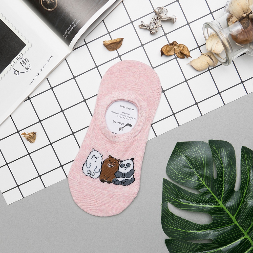 AHUA阿華有事嗎 韓國襪子 肩並肩熊熊遇見你隱形襪 K0502 正韓少女襪 韓妞必備船襪 百搭純棉襪 卡通踝襪