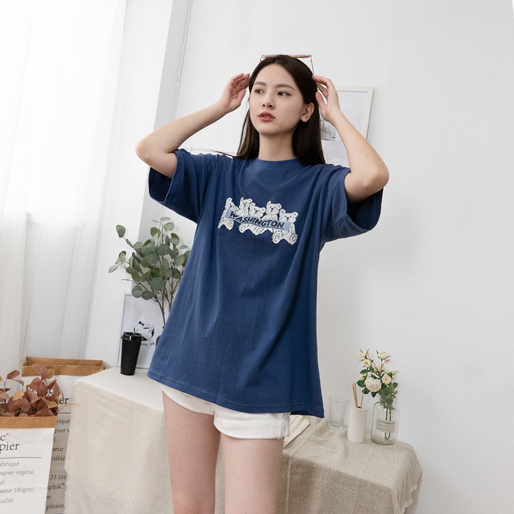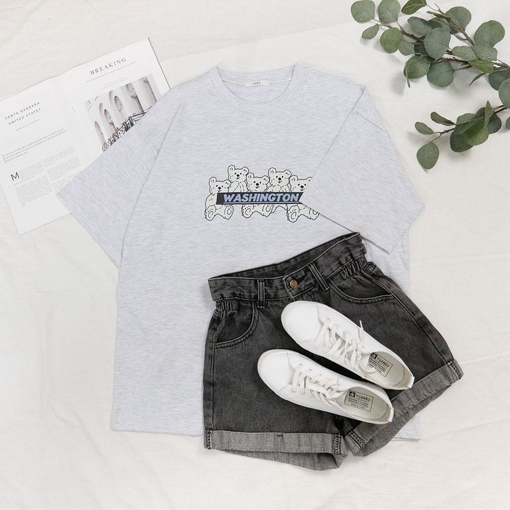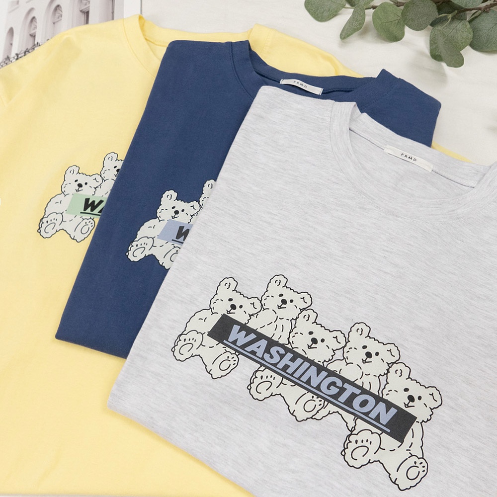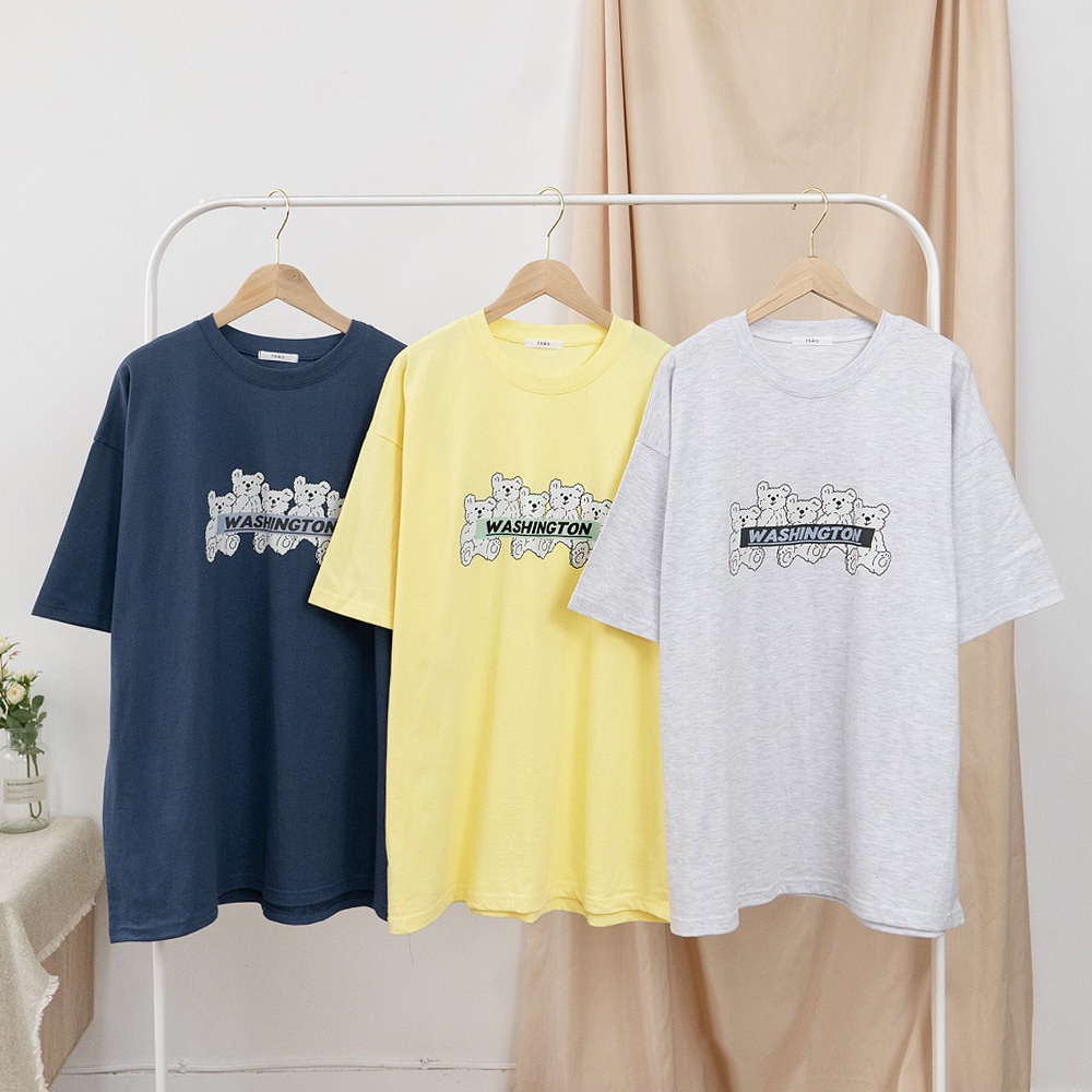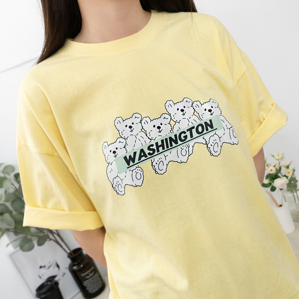 AHUA阿華有事嗎 正韓女裝 WASHINGTON熊仔印花短袖T恤 【C2512】純色 短袖上衣 氣質 百搭 韓妞必備