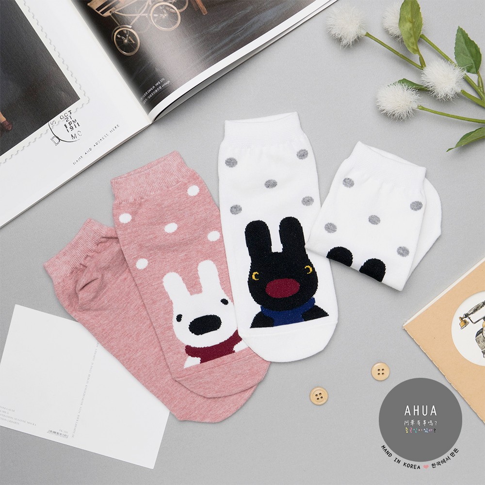 AHUA阿華有事嗎 韓國襪子 圓點卡斯柏&麗莎短襪 K0504 正韓少女襪 韓妞必備卡通襪 百搭純棉襪 素色襪子