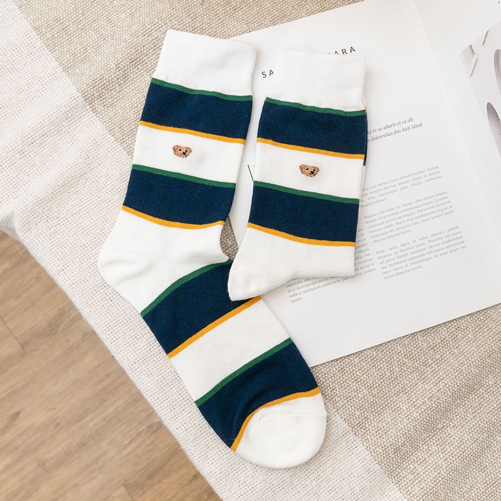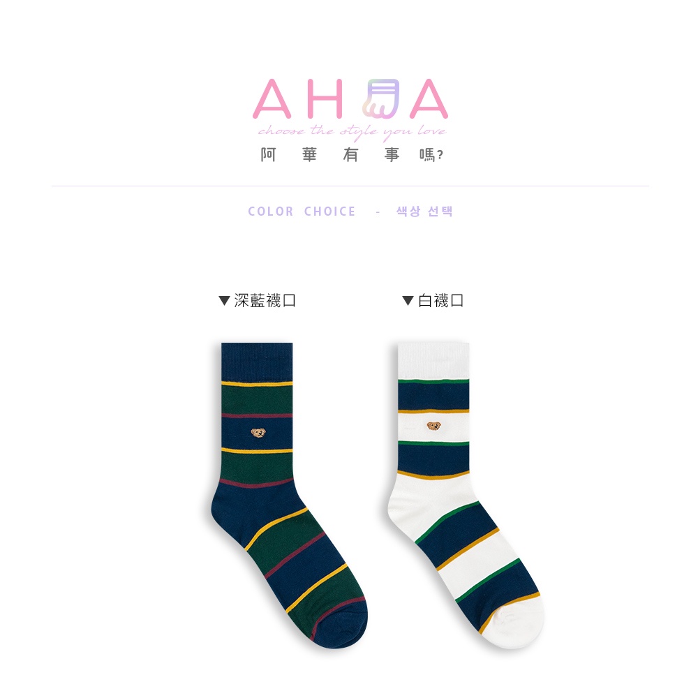 AHUA阿華有事嗎 韓國襪子 泰迪熊小頭橫條紋男生中長筒襪 男襪 K1527 條紋 男襪 中筒襪 中長筒襪 百搭純棉襪