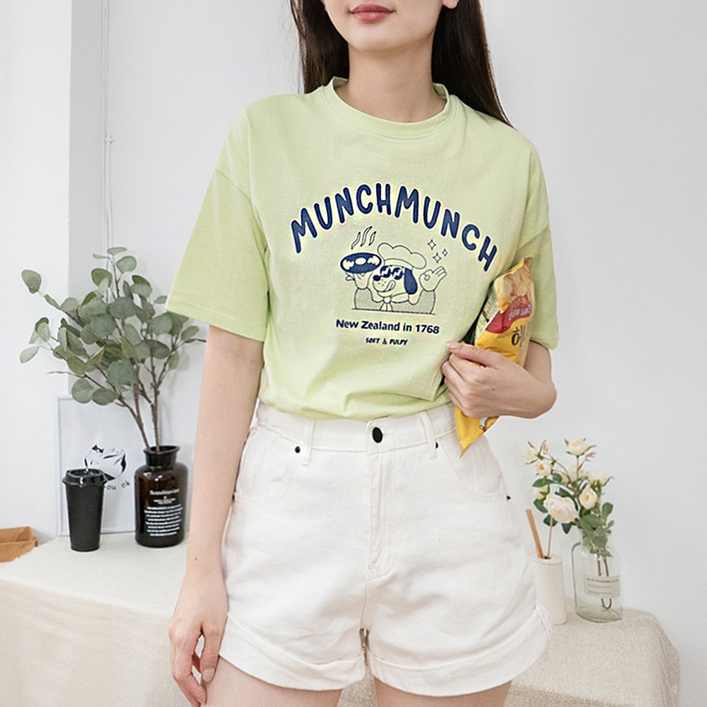 AHUA阿華有事嗎 正韓女裝 廚師狗插畫短袖T恤【C2506】純色 短袖上衣 氣質 百搭 韓妞必備