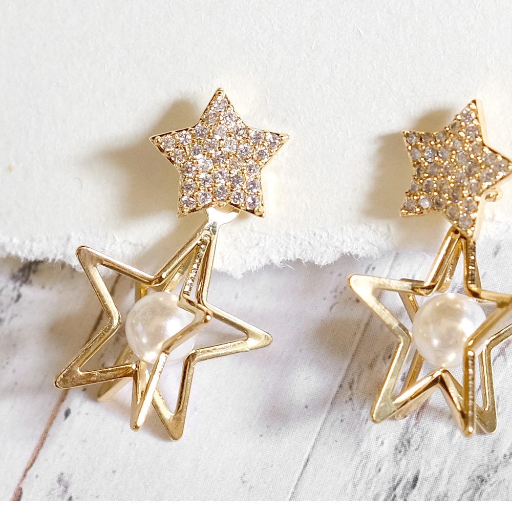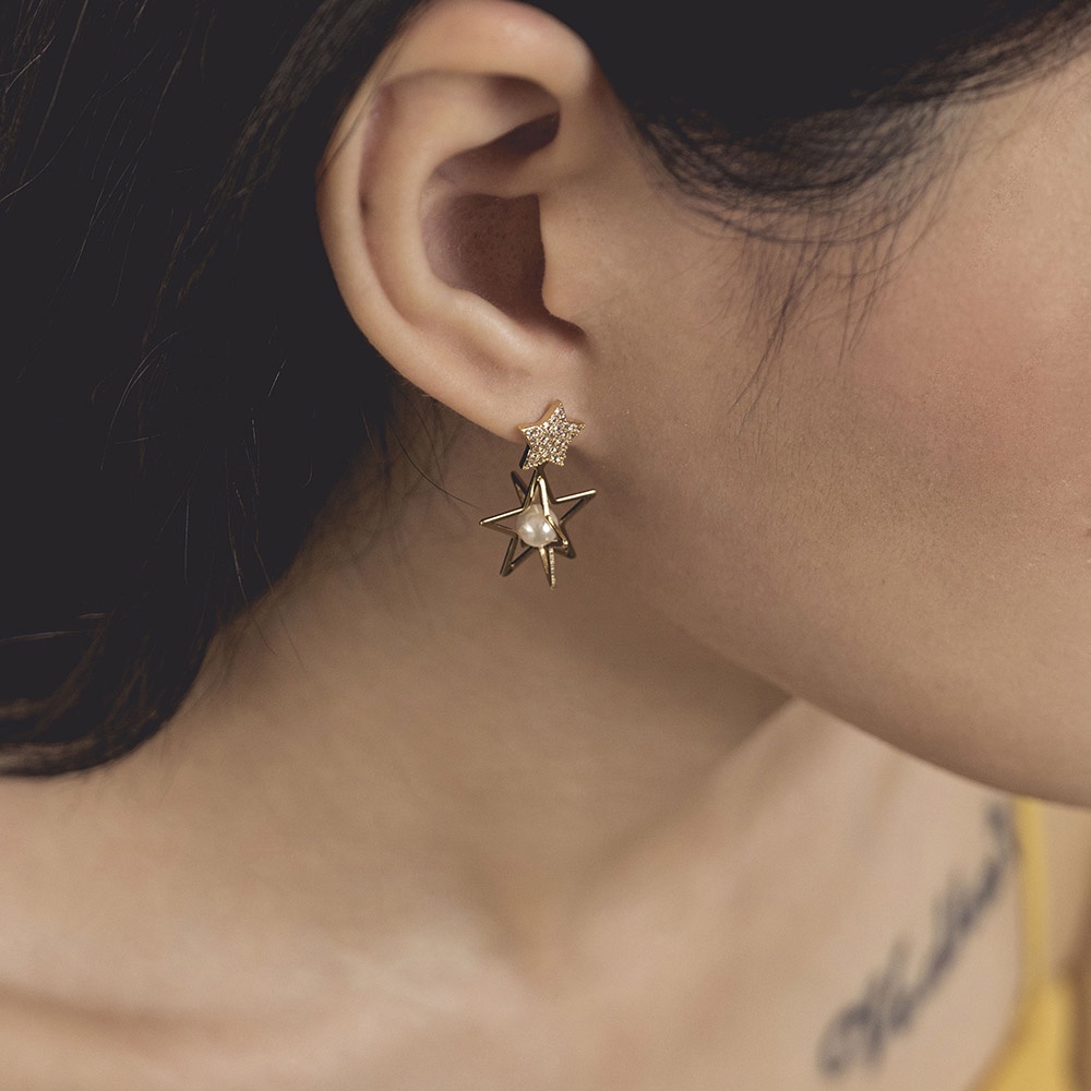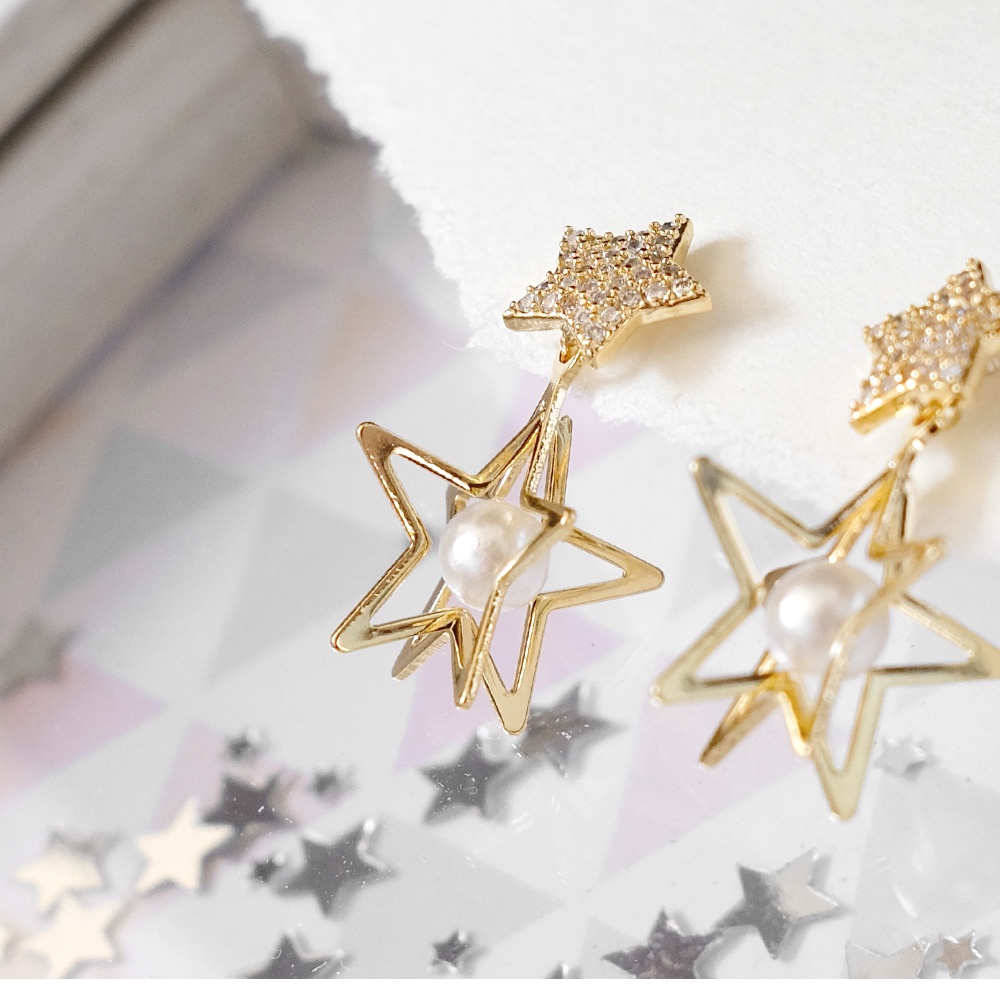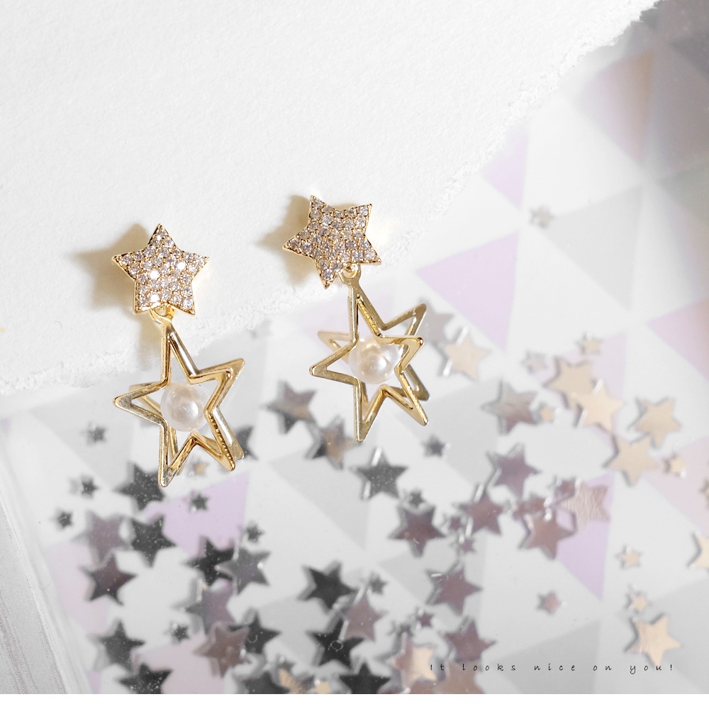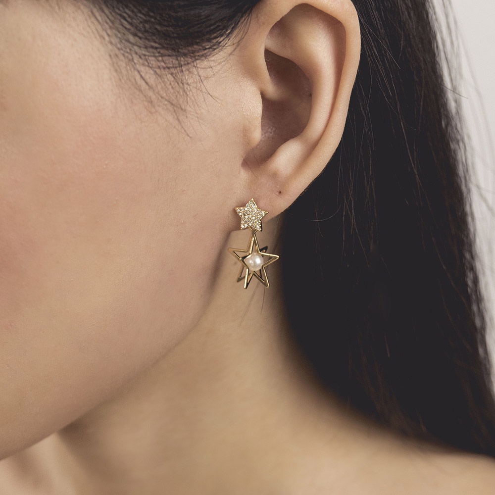 AHUA阿華有事嗎 韓國飾品 星星相惜珍珠耳環【A0191】正韓 時尚 浪漫 垂墜 水鑽 簡約 韓妞必備 百搭 基本款