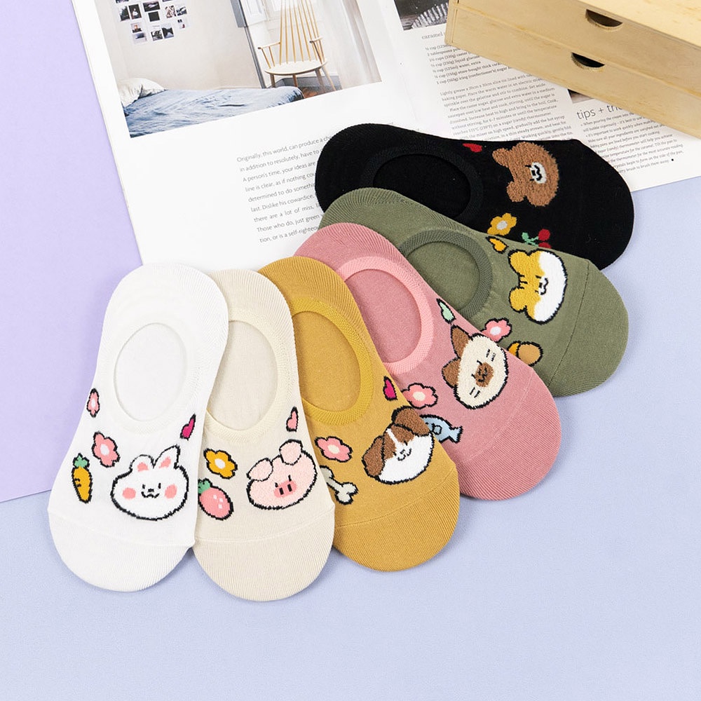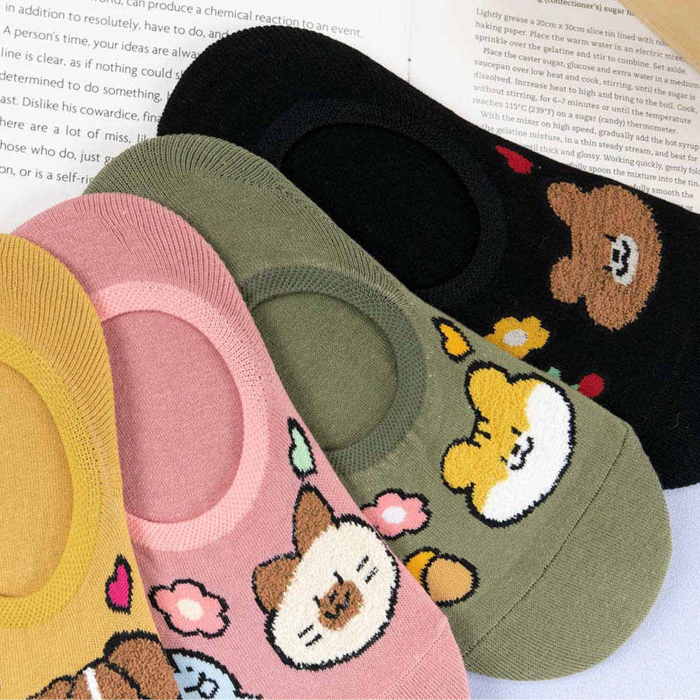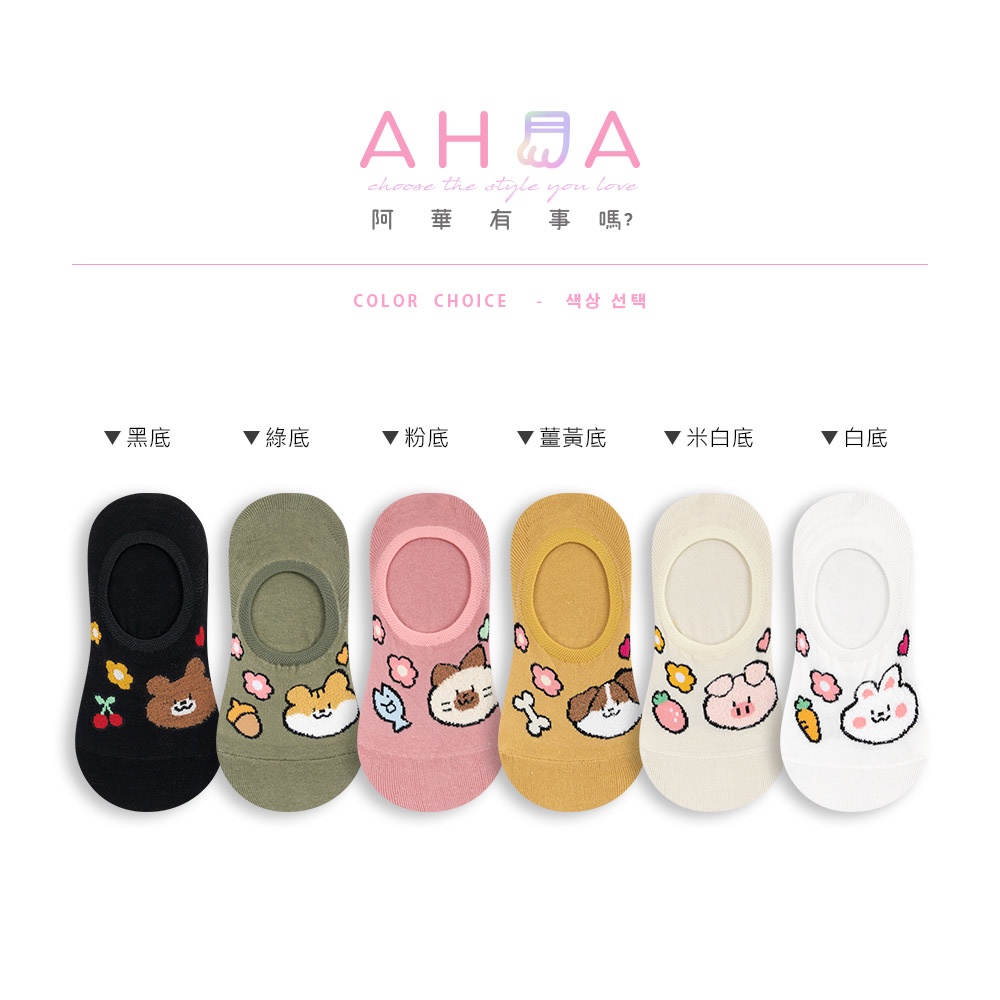 AHUA阿華有事嗎 韓國襪子 毛毛動物食物花朵隱形襪 K1523 可愛 印花 女襪 隱形襪 百搭純棉襪