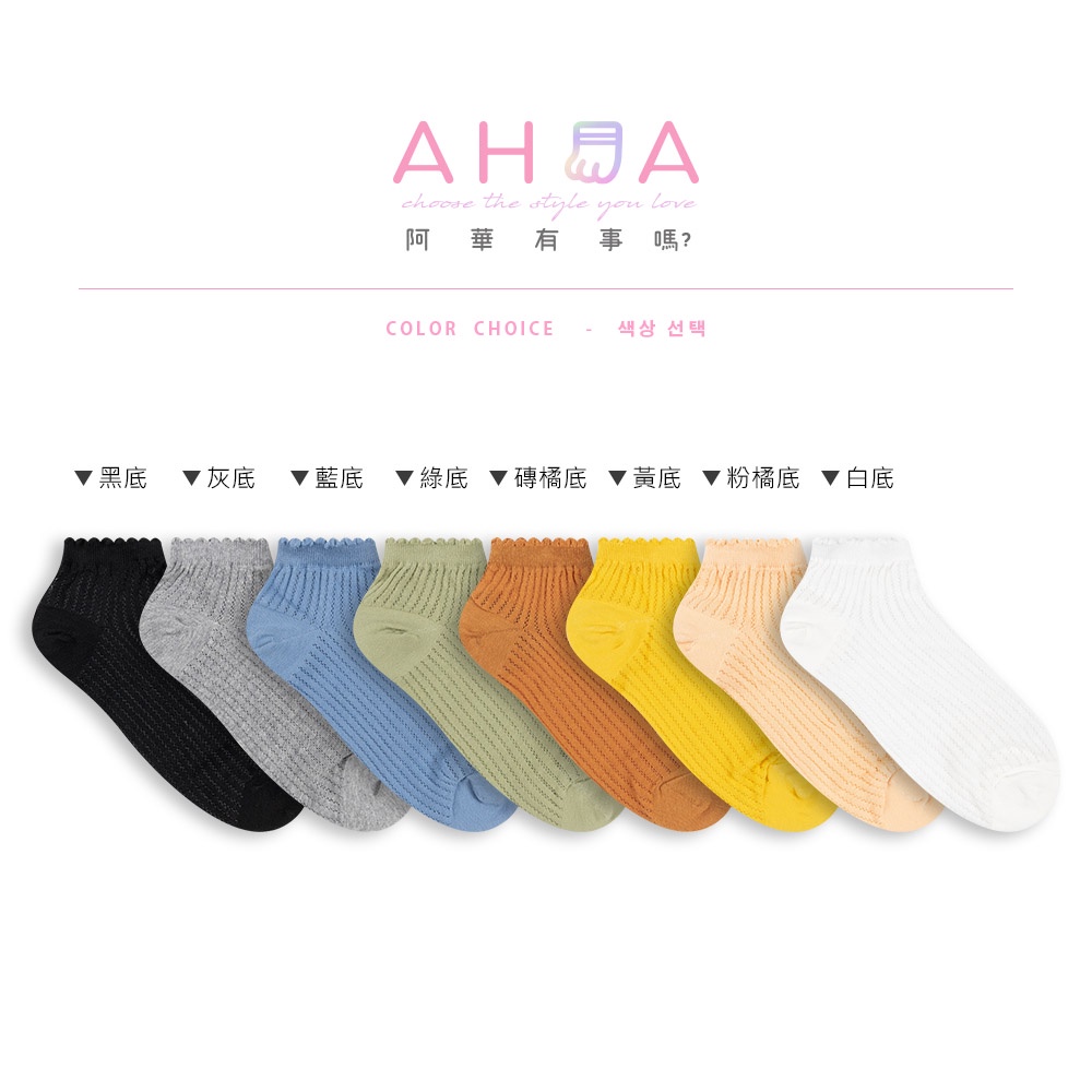 AHUA阿華有事嗎 韓國襪子 純色花邊縷空短襪【K1482】少女襪 韓妞必備中筒襪 百搭純棉襪|