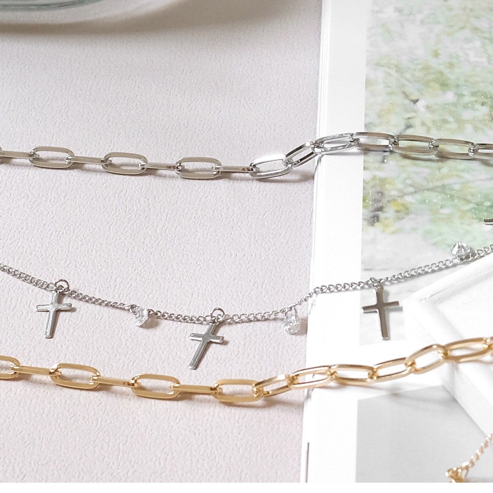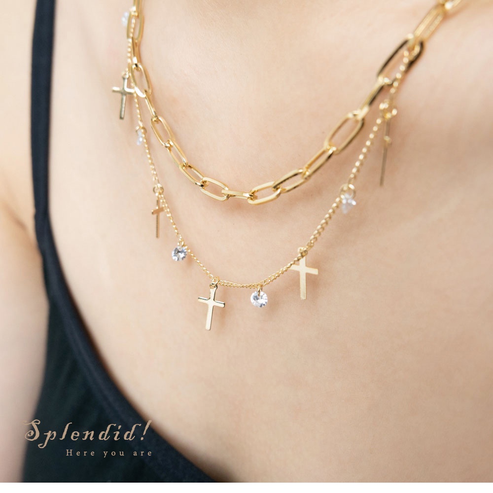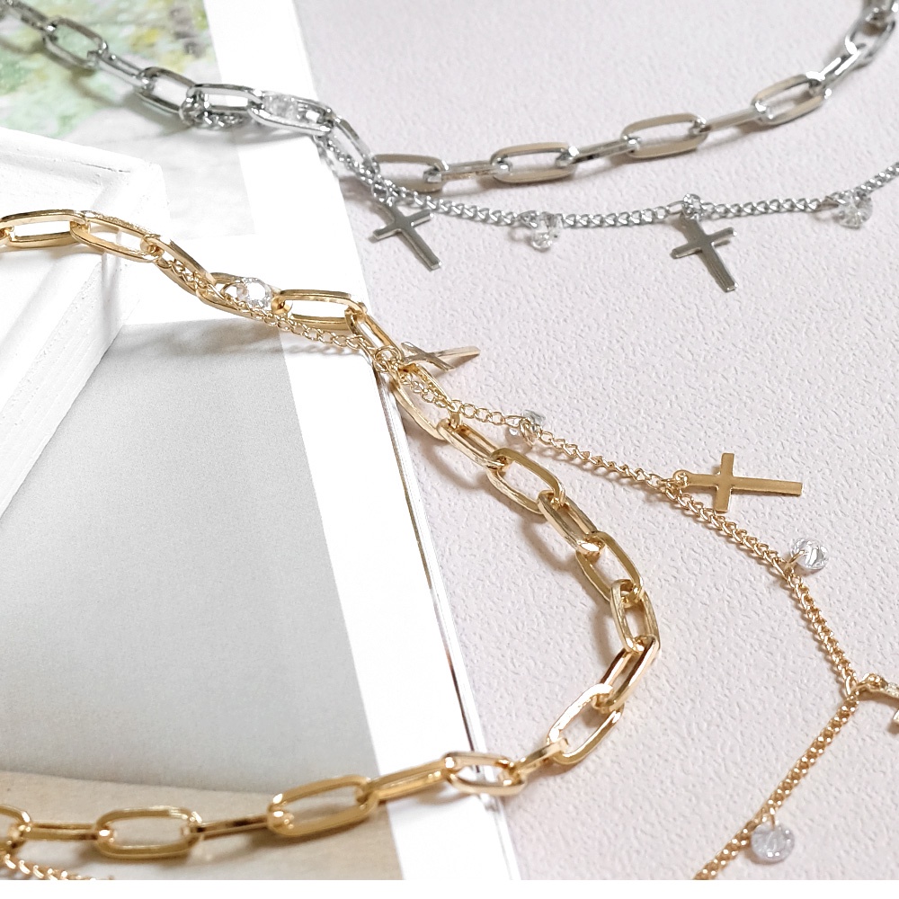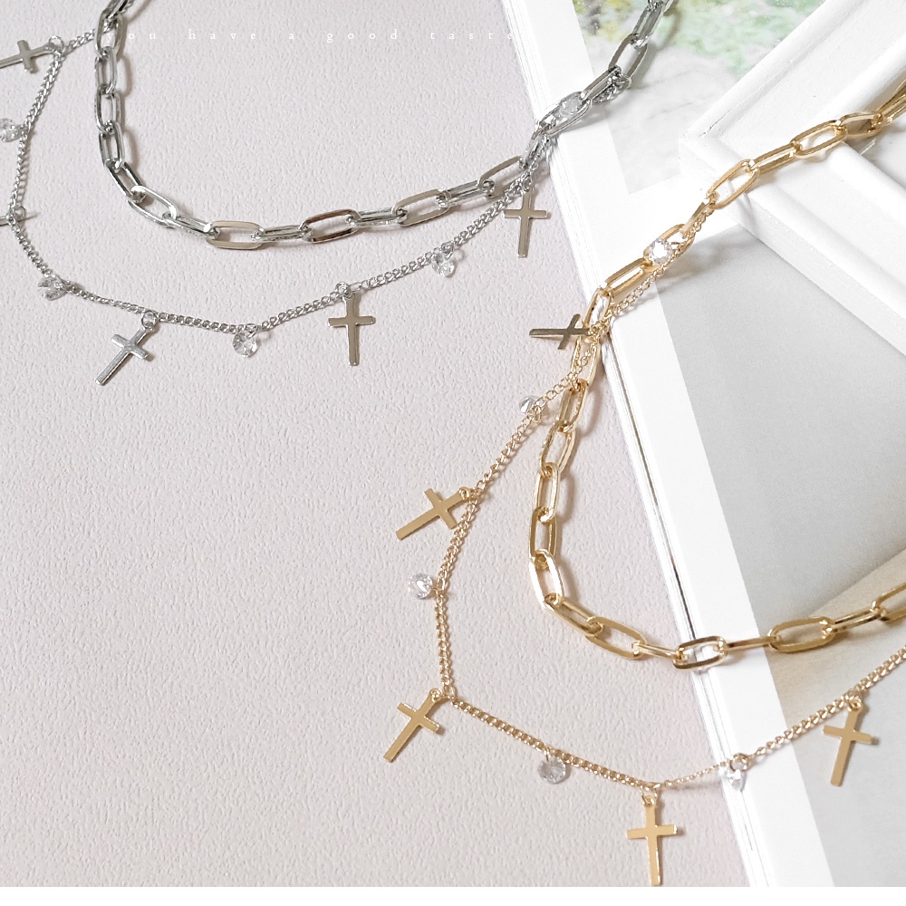 AHUA阿華有事嗎 韓國飾品 璀璨水鑽十字架雙層中短鍊【A0345】正韓 項鍊 頸鍊 時尚 簡約 韓妞必備 百搭 基本款