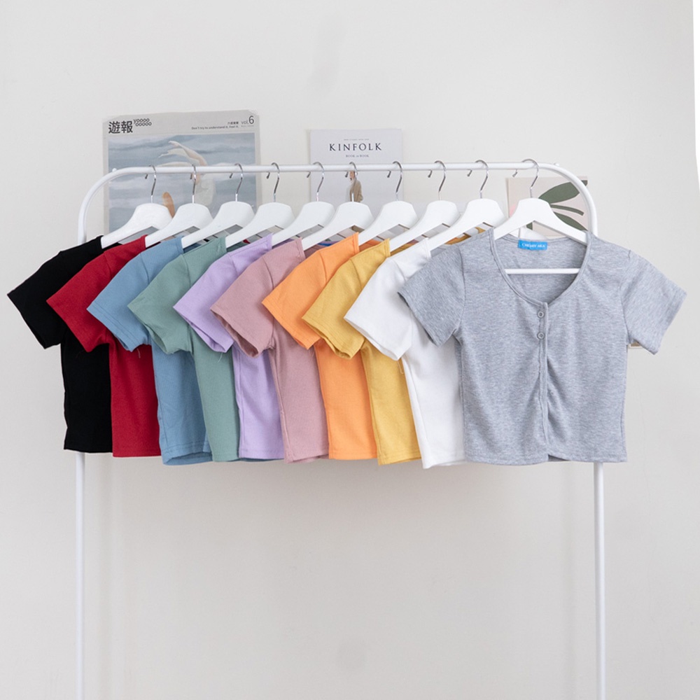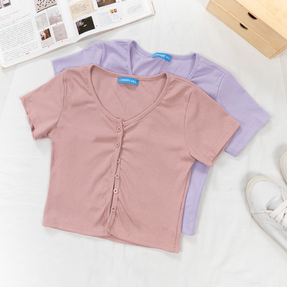 AHUA阿華有事嗎 韓系女裝 純色排扣短袖上衣【C2113】百搭 素色 修身 顯瘦 短版 可愛 基本款 韓妞必備