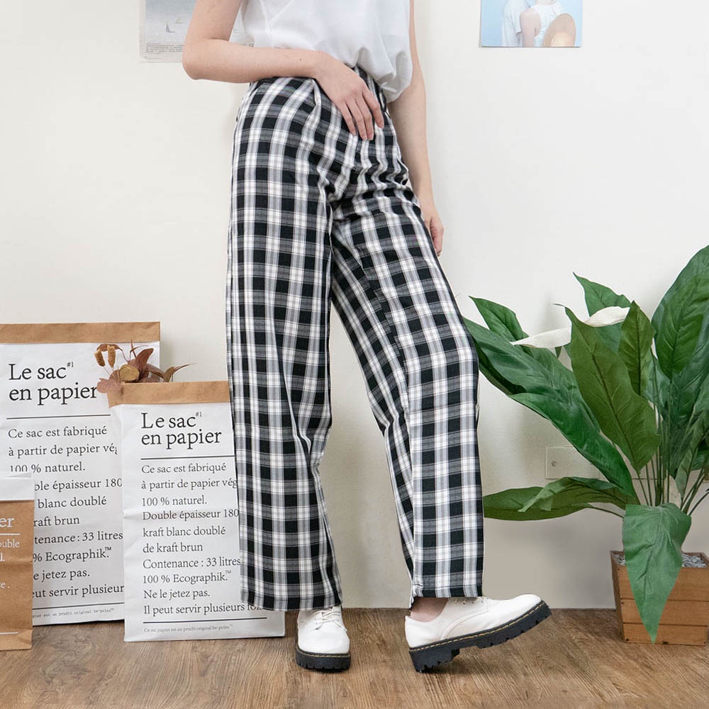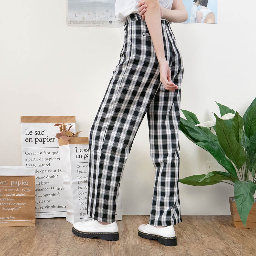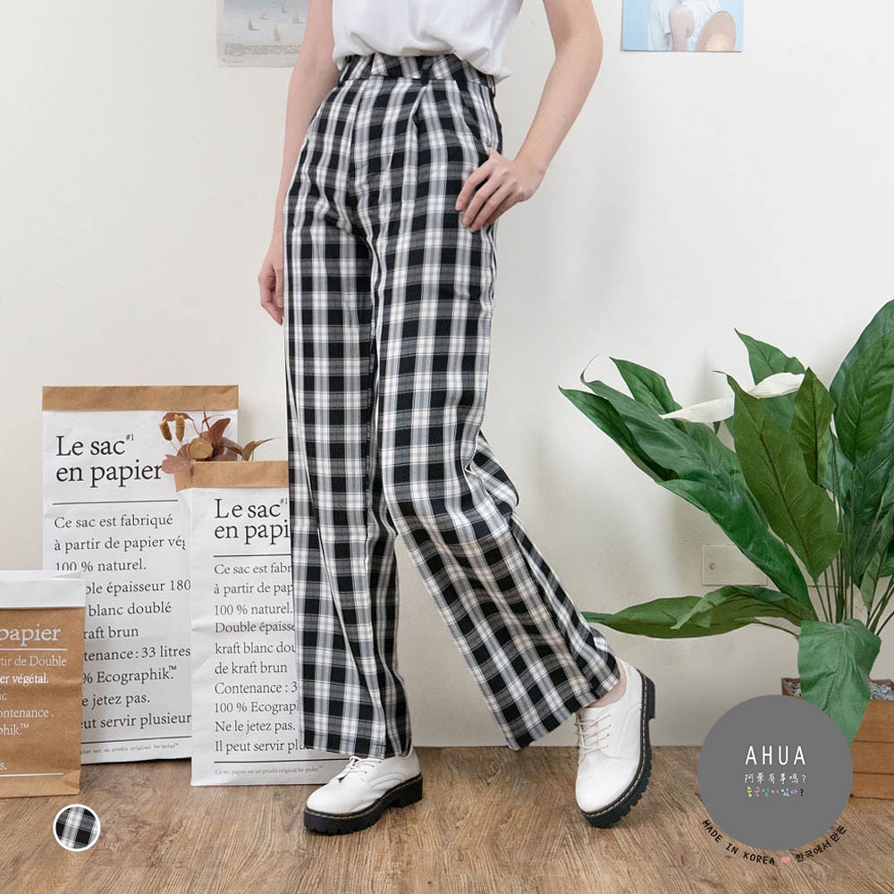 AUHA阿華有事嗎 韓國襪子 格紋直筒落地褲【C2121】顯瘦 方格 百搭 文青 清新 修身 長褲 韓妞必備 基本款