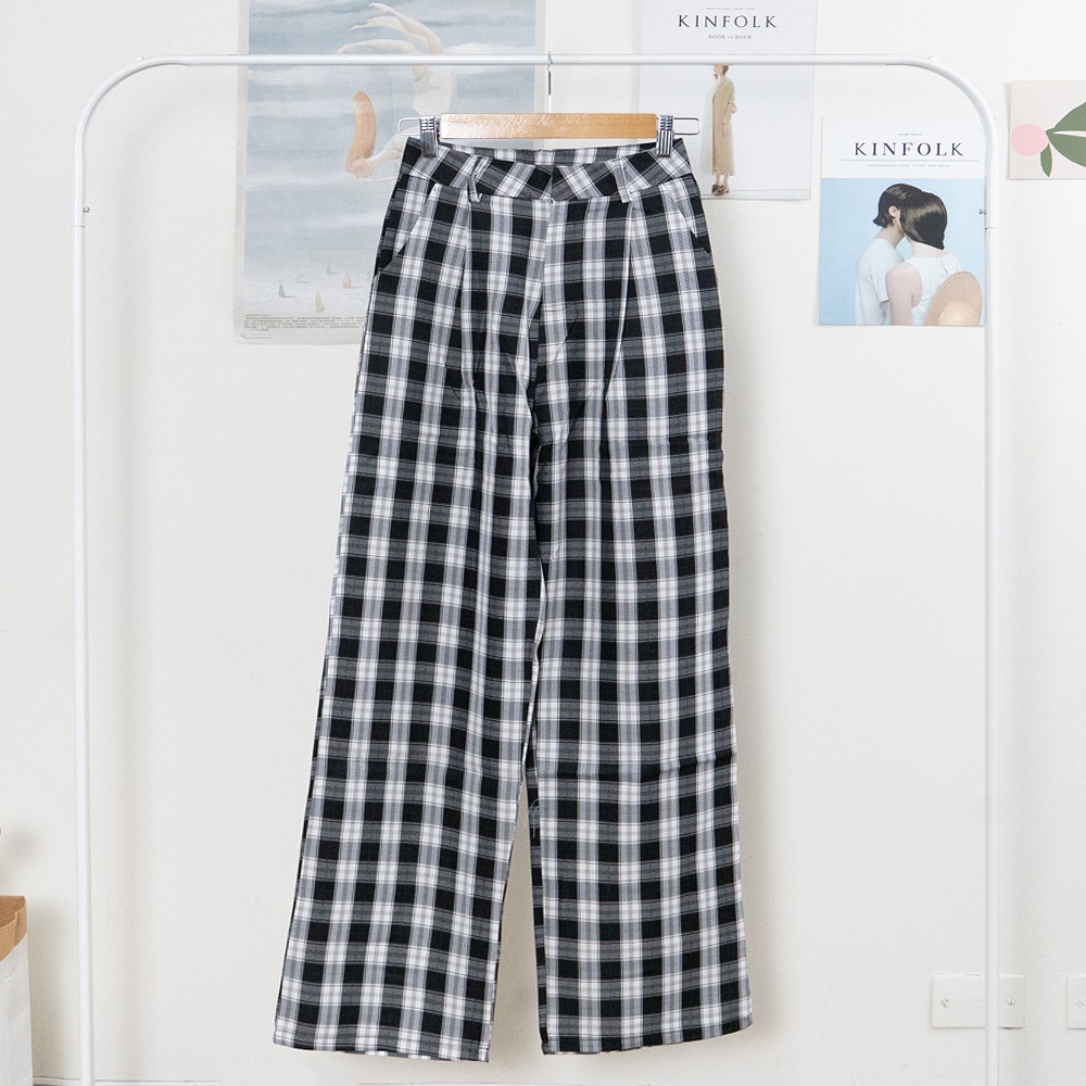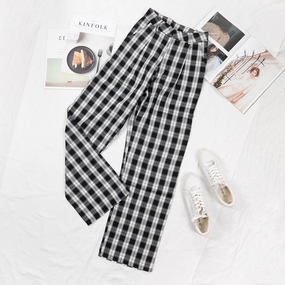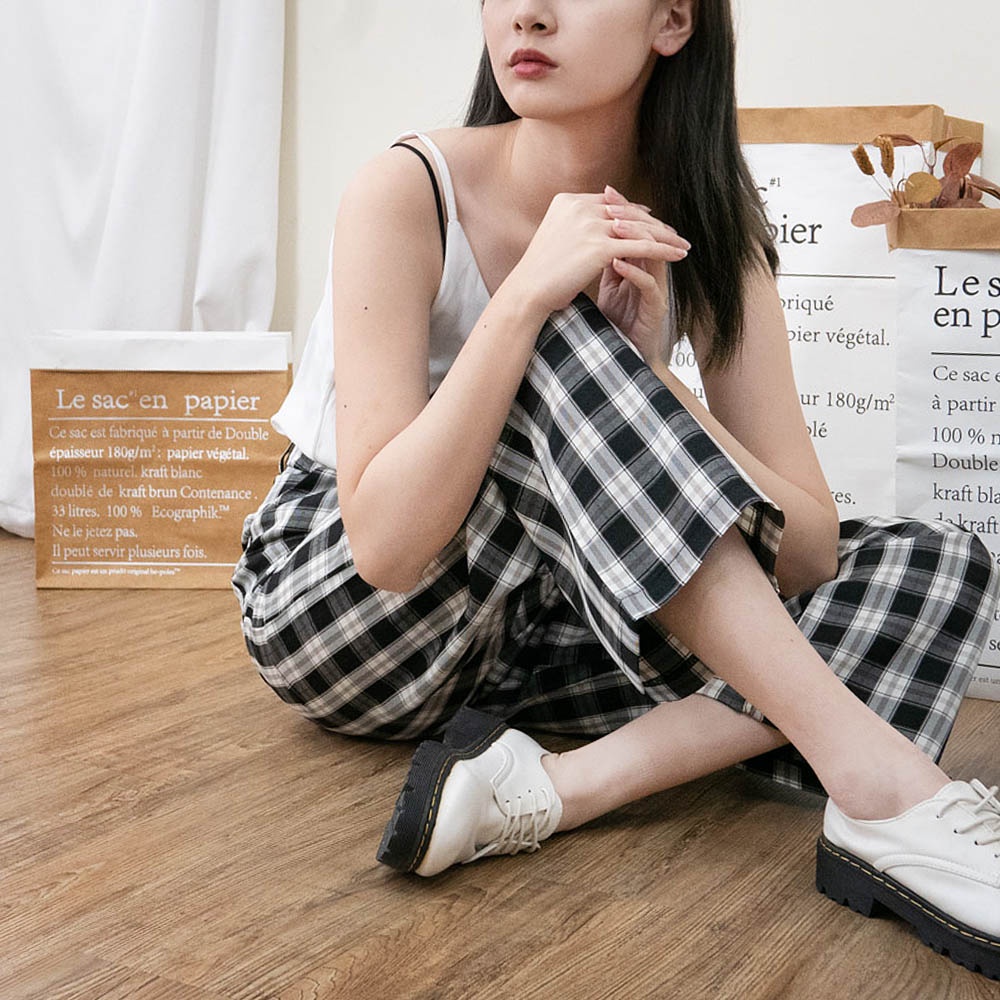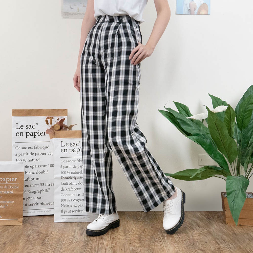 AUHA阿華有事嗎 韓國襪子 格紋直筒落地褲【C2121】顯瘦 方格 百搭 文青 清新 修身 長褲 韓妞必備 基本款
