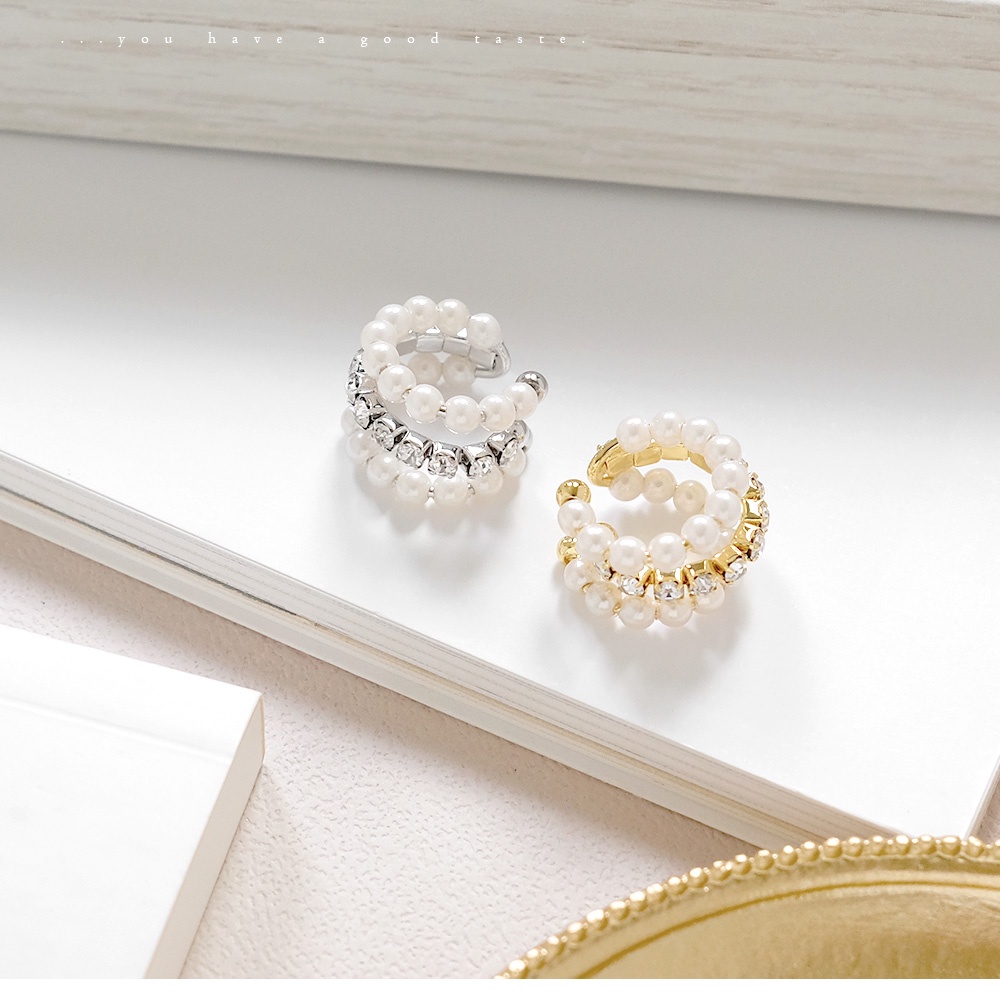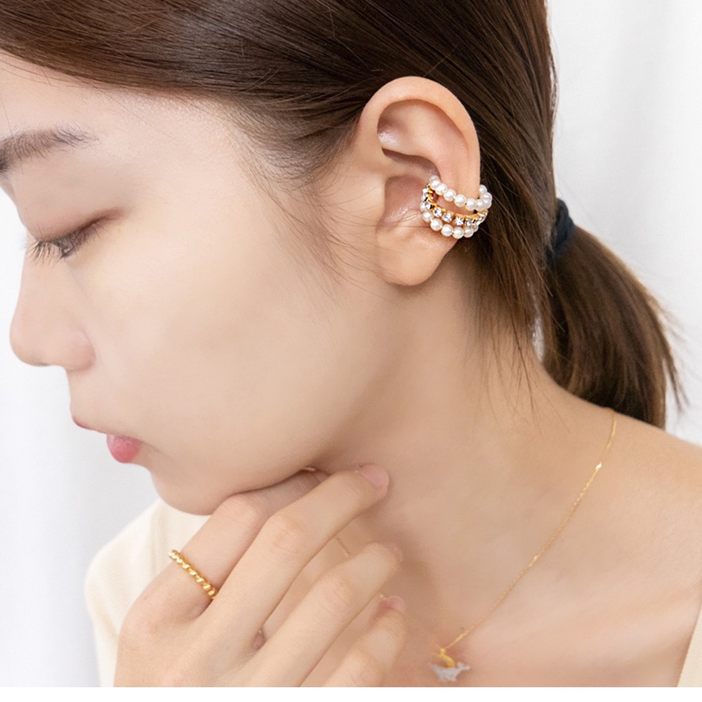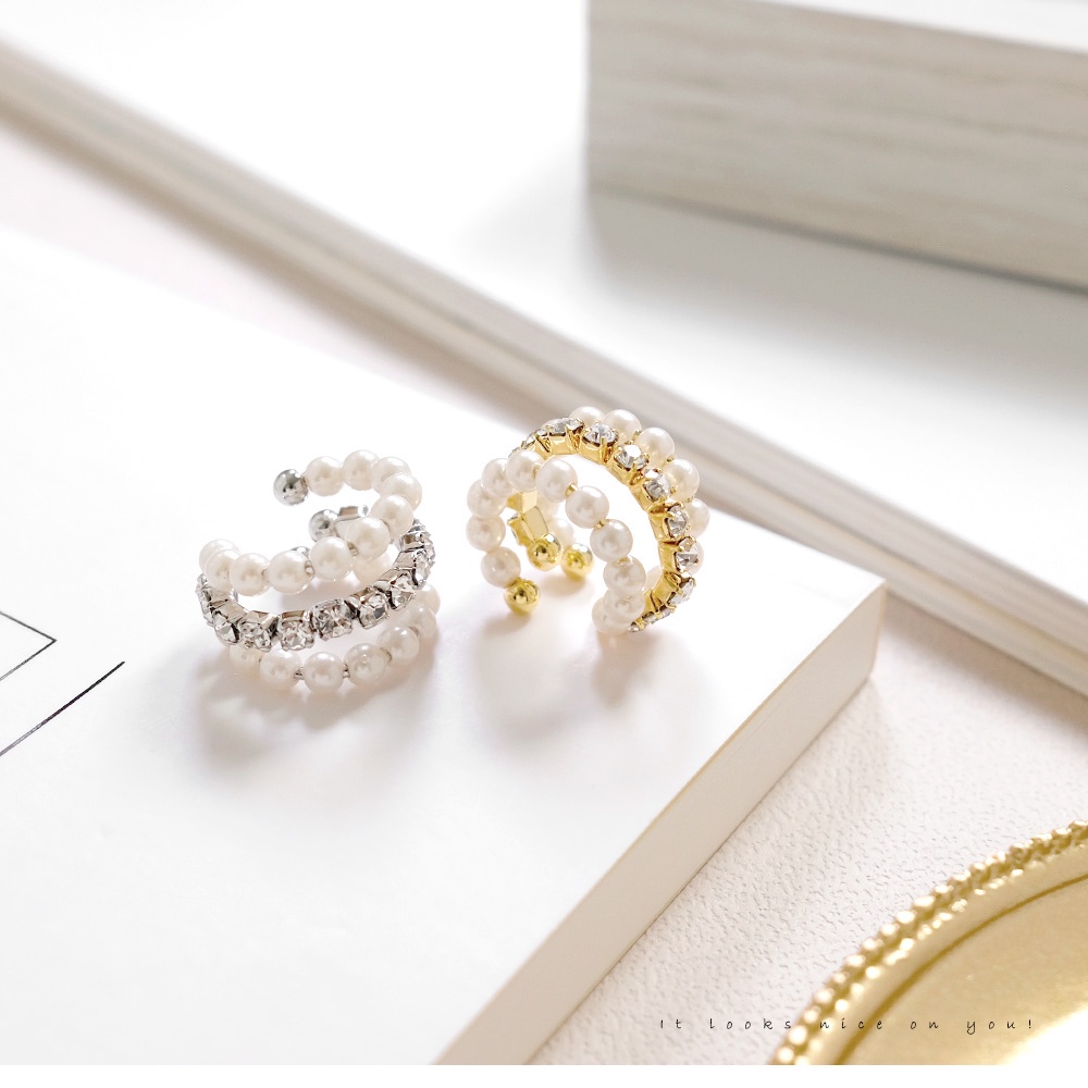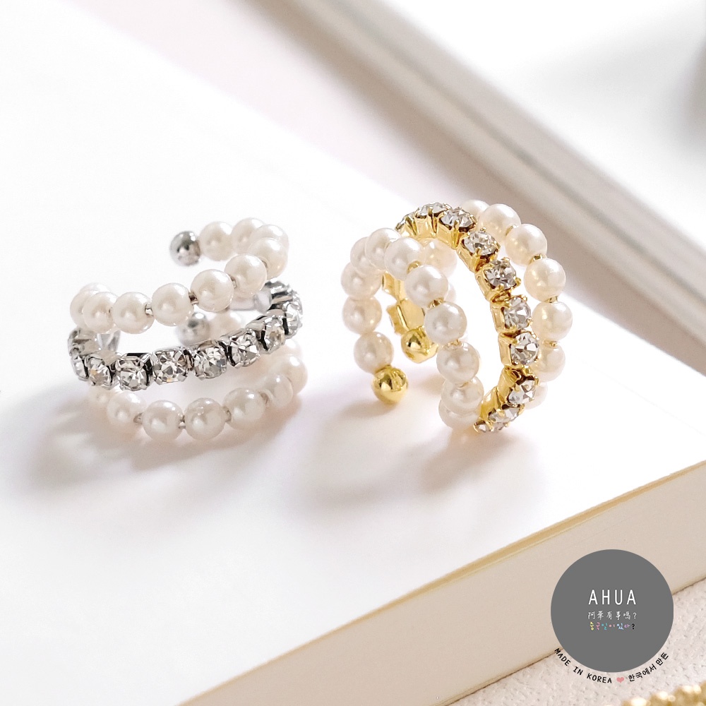 AHUA阿華有事嗎 韓國飾品 法式珍珠水鑽三環耳骨夾【A0438】正韓 時尚 簡約 耳夾 夾式 韓妞必備 百搭 基本款