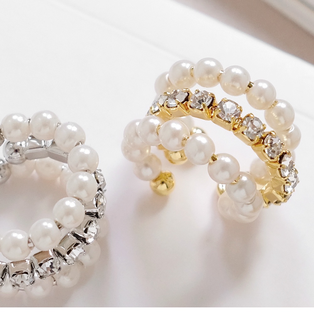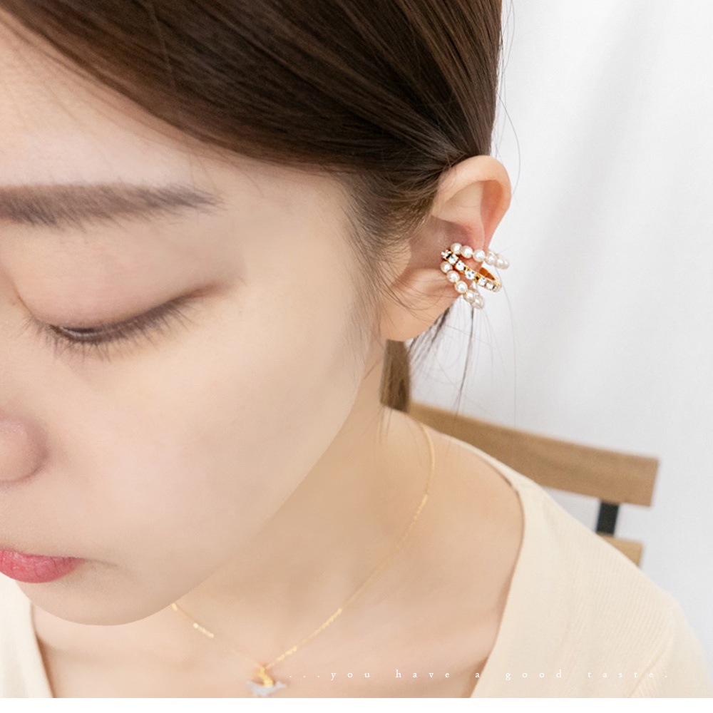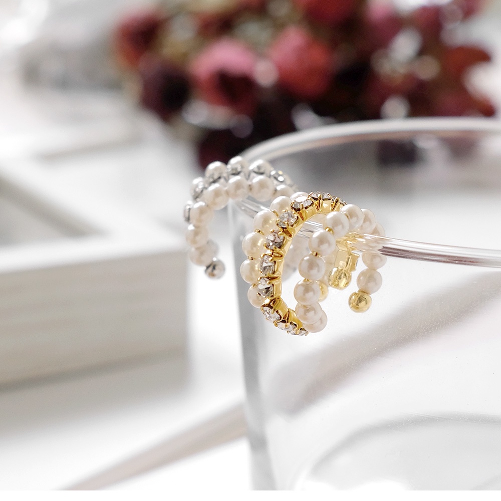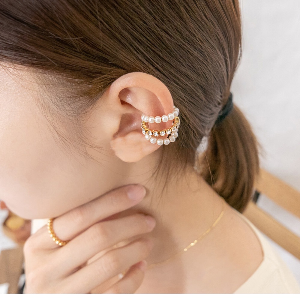 AHUA阿華有事嗎 韓國飾品 法式珍珠水鑽三環耳骨夾【A0438】正韓 時尚 簡約 耳夾 夾式 韓妞必備 百搭 基本款