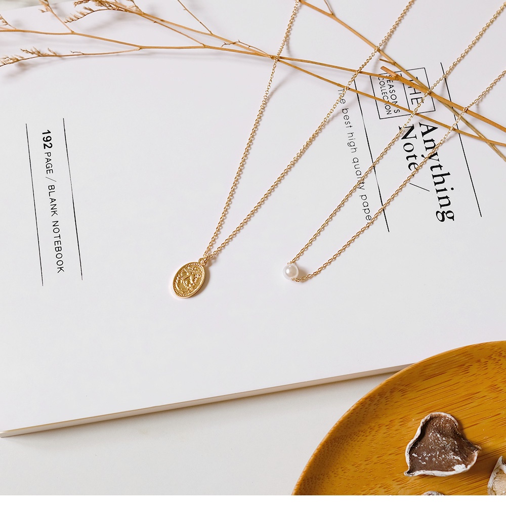 AHUA阿華有事嗎 韓國飾品 珍珠女王古印幣項鍊2入組【A0289】正韓 長鍊 頸鍊 時尚 簡約 韓妞必備 百搭 基本款