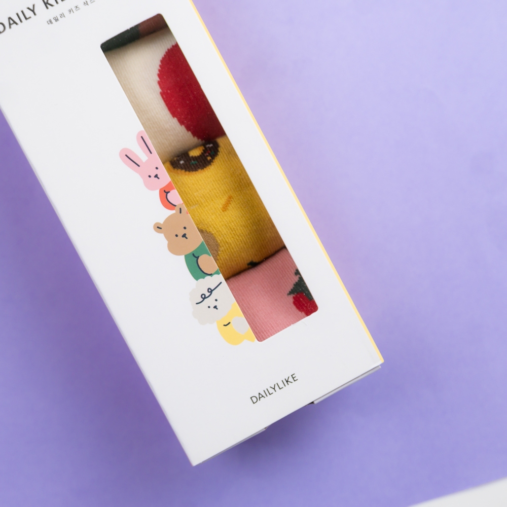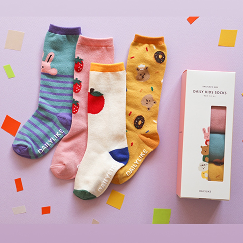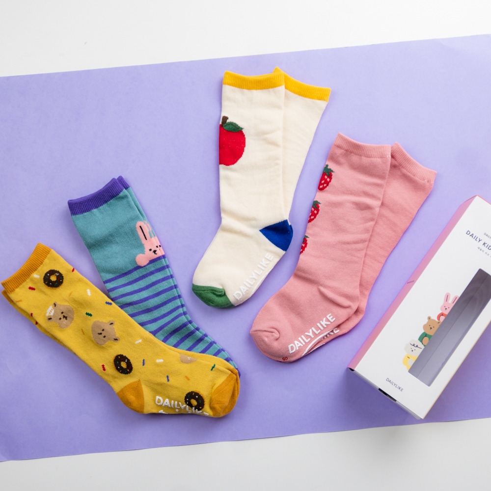 AHUA阿華有事嗎 韓國Dailylike童襪 三隻小動物盒裝長筒襪四入組 兒童襪 底部止滑膠條 KCD0039