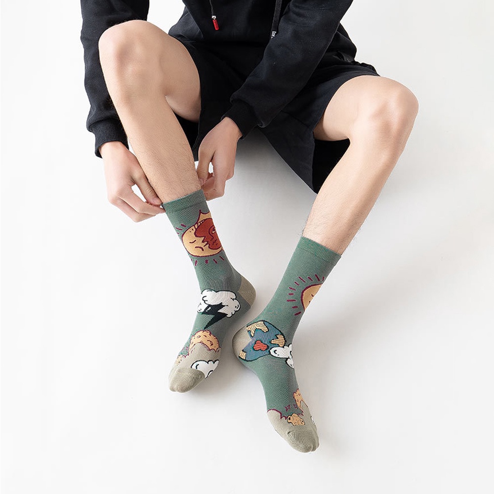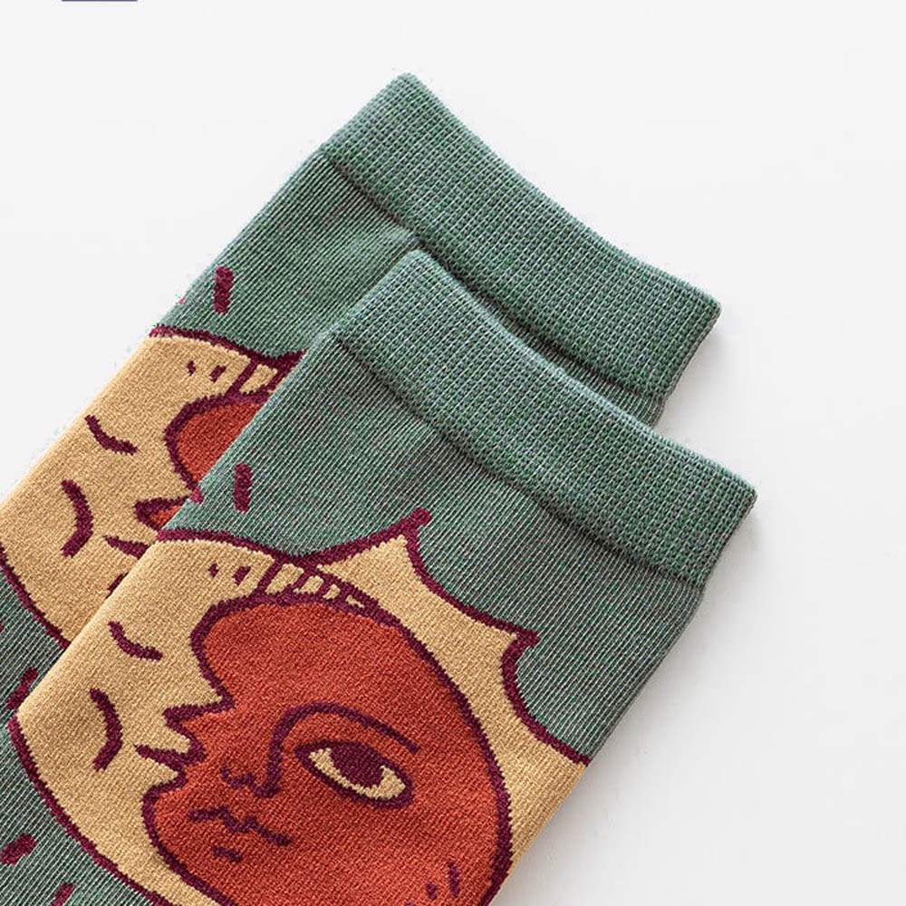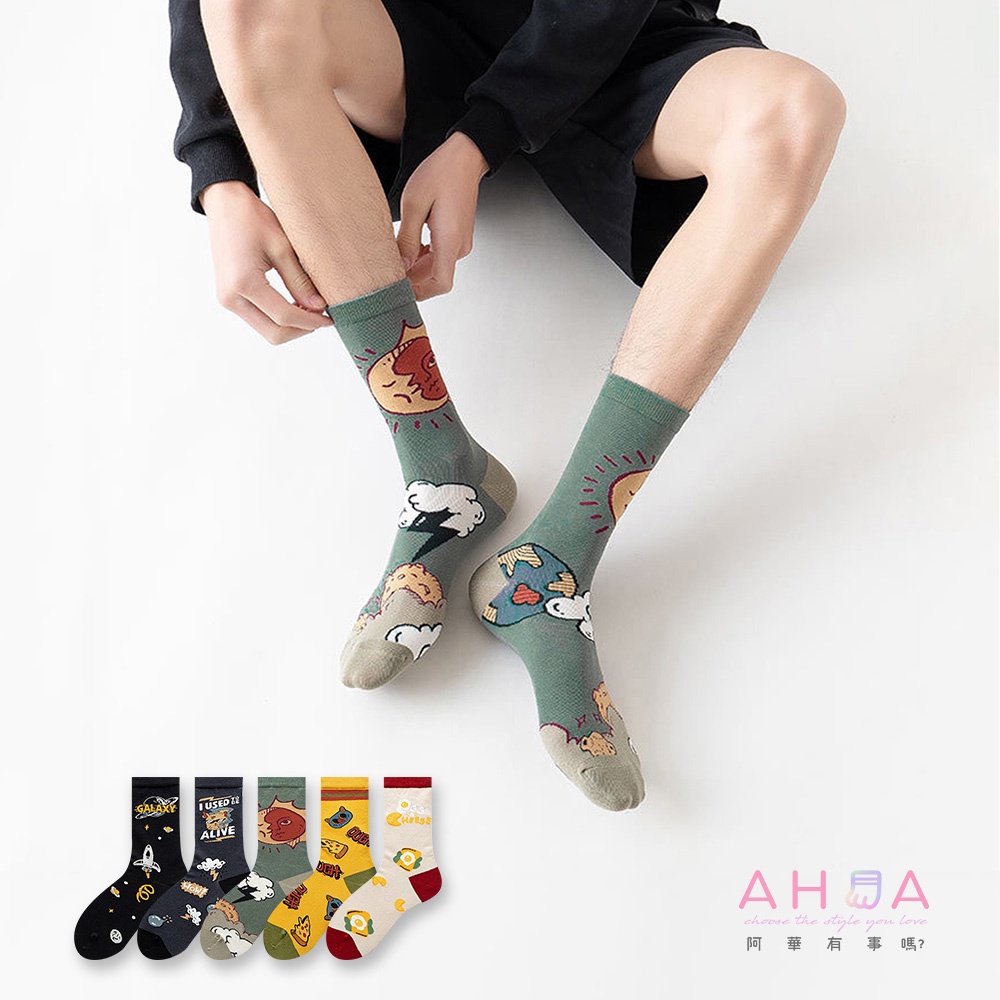 AUHA阿華有事嗎 日系襪子 潮流個性插圖中筒襪【S0432】百搭 可愛 文青 潮流 純棉 男女襪 中性襪 中筒襪