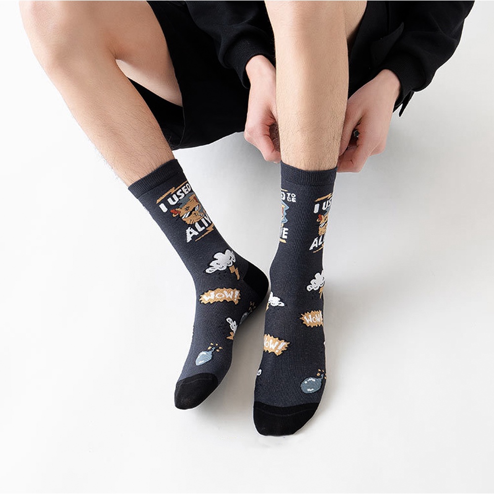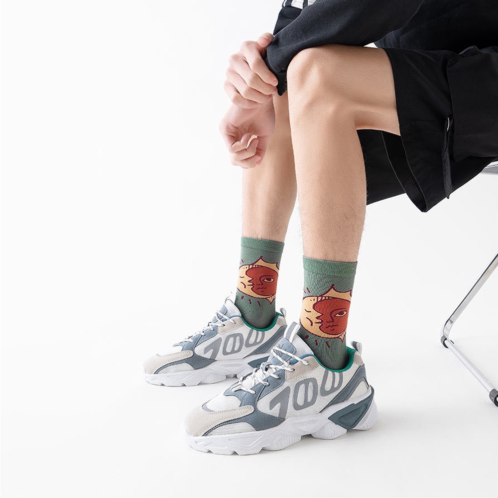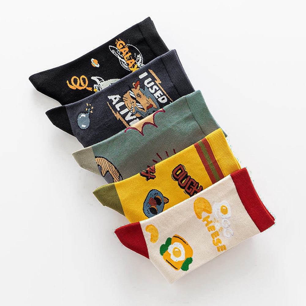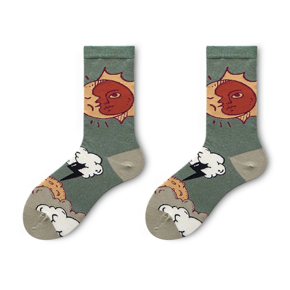 AUHA阿華有事嗎 日系襪子 潮流個性插圖中筒襪【S0432】百搭 可愛 文青 潮流 純棉 男女襪 中性襪 中筒襪