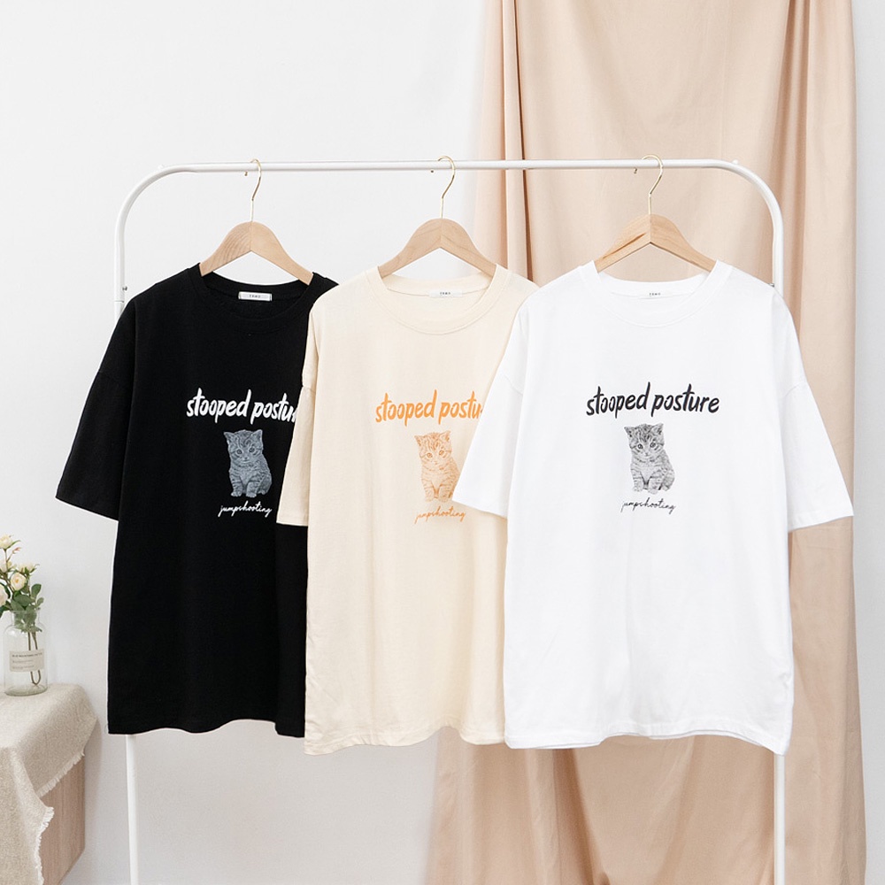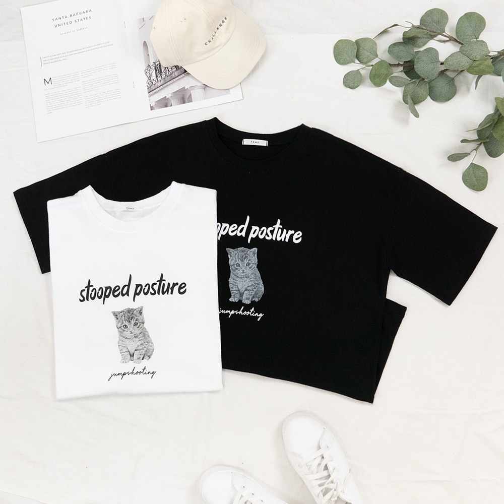 AHUA阿華有事嗎 正韓女裝 印花萌貓短袖T恤【C2509】純色 短袖上衣 氣質 百搭 韓妞必備