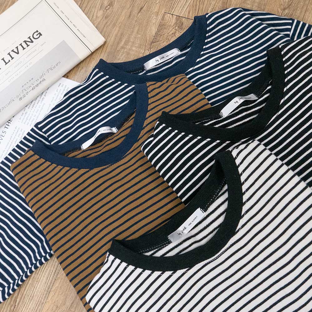 AHUA阿華有事嗎 正韓女裝 領口撞色標籤條紋長袖上衣 C2639 長袖T恤 韓妞必備 韓國服飾 韓國直送