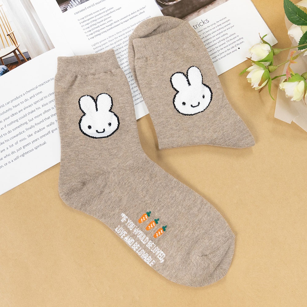 AHUA阿華有事嗎 韓國襪子 簡約萌兔胡蘿蔔中筒襪 女襪 K1619 襪子推薦 流行襪首選 長襪 純棉襪