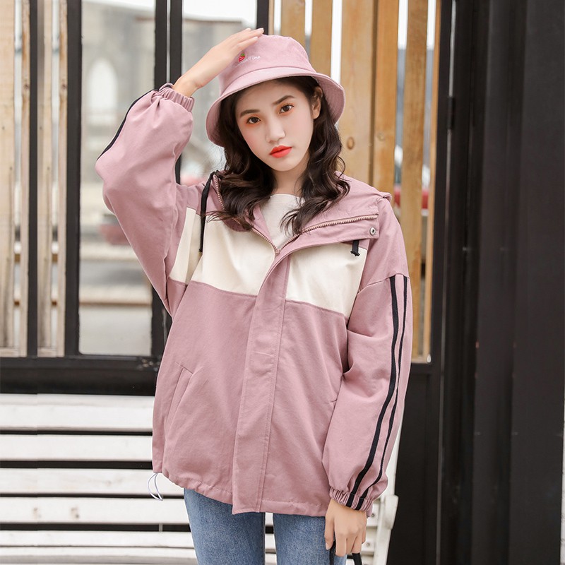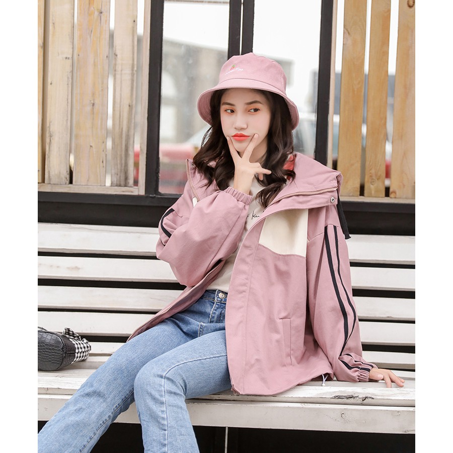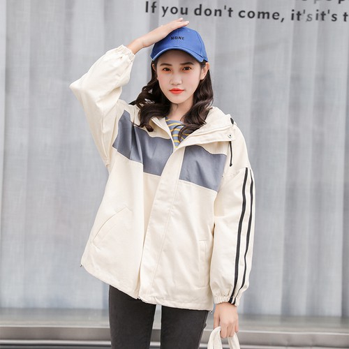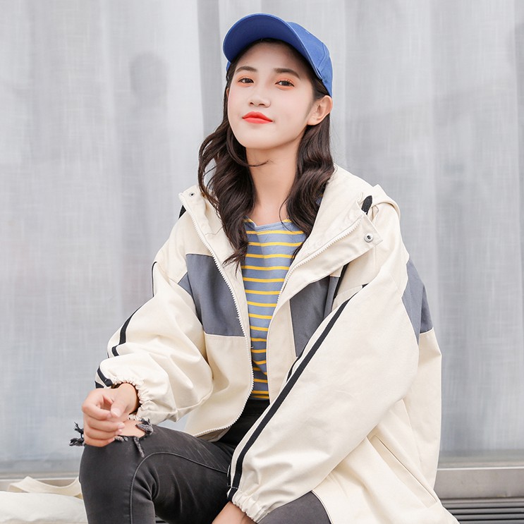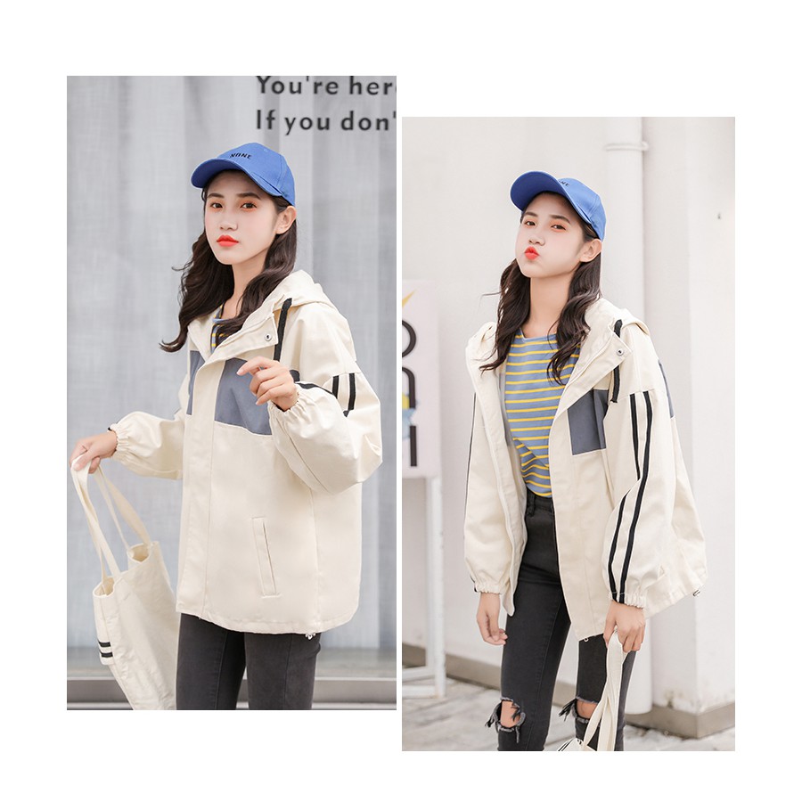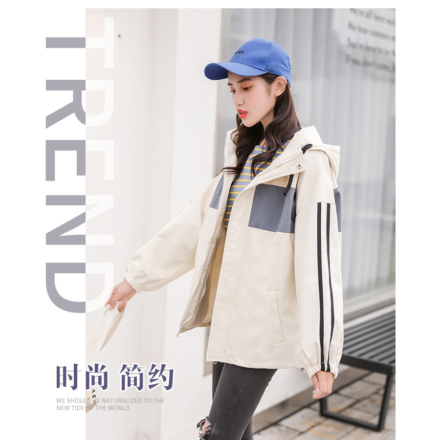AHUA阿華有事嗎 韓系女裝 拼色雙條紋連帽防風外套 2色 C0648 四季百搭薄外套 韓妞必備風衣 簡約防風外套