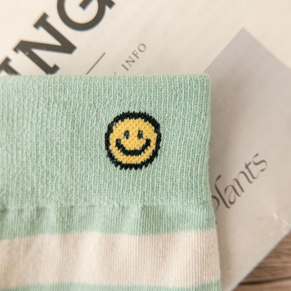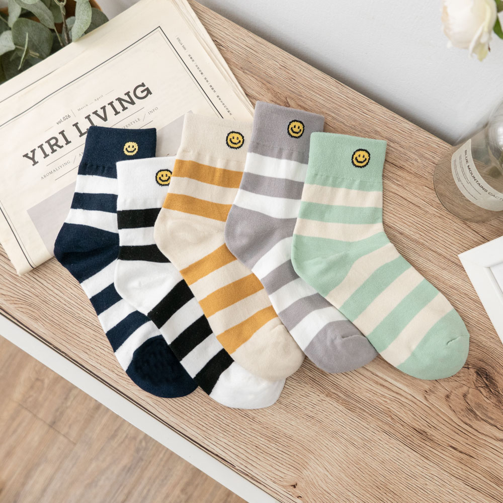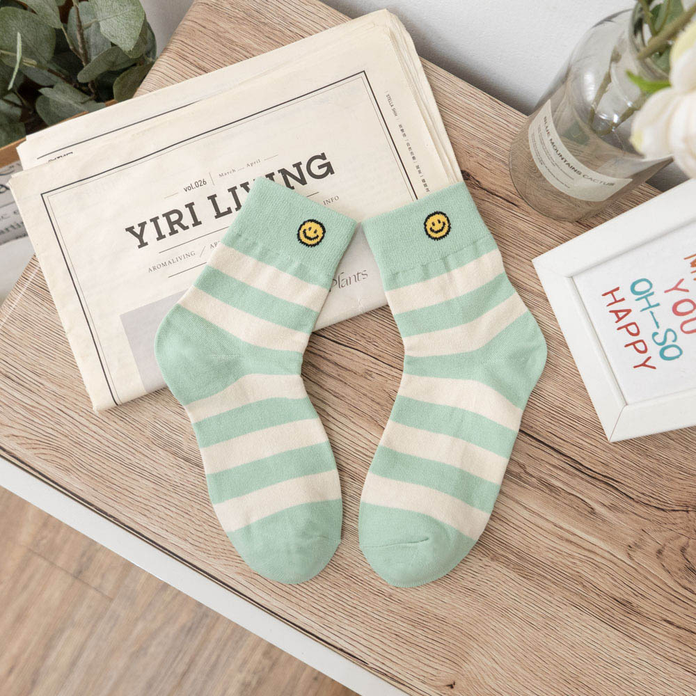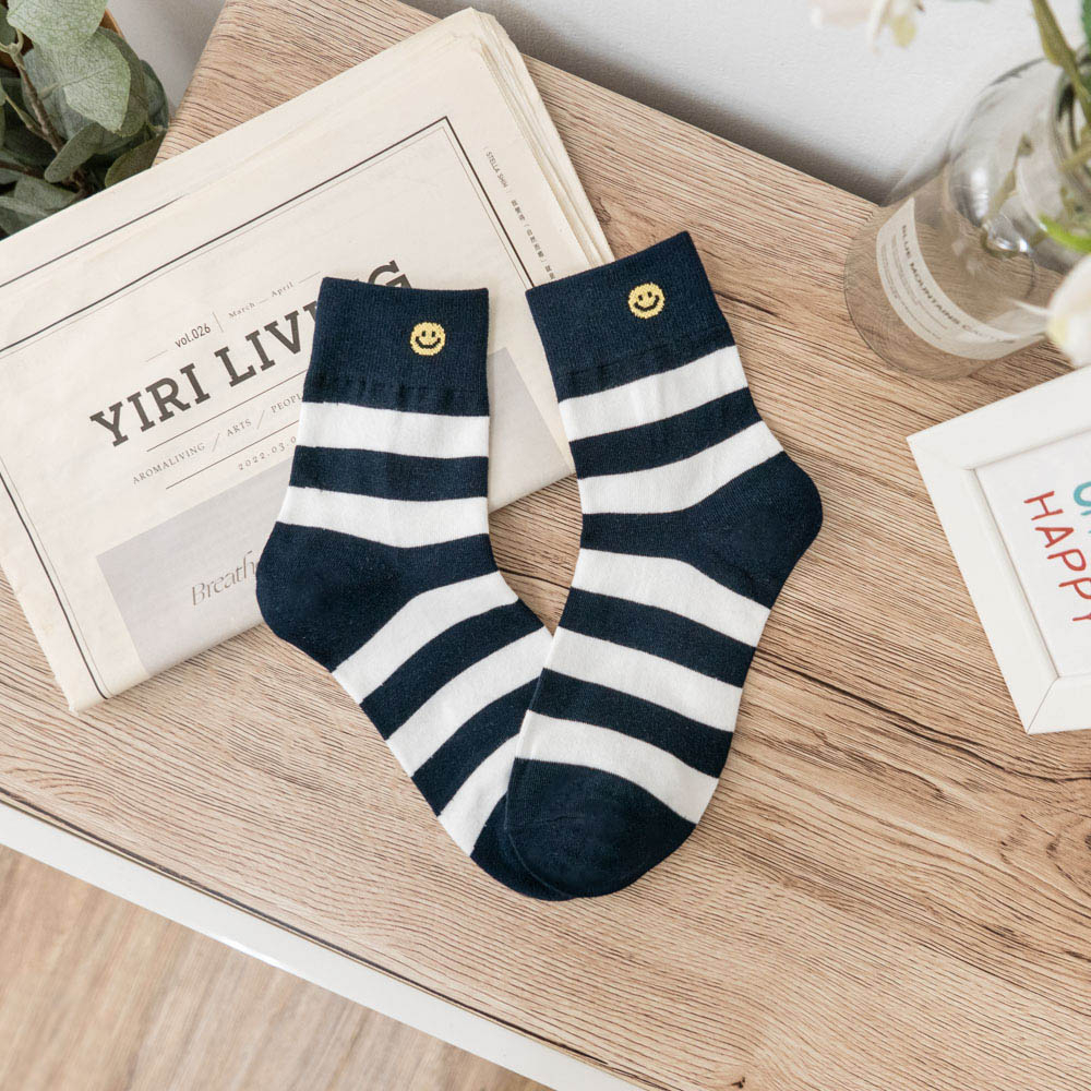 AHUA阿華有事嗎 韓國襪子 笑臉條紋中筒襪 K1735 襪子推薦 流行襪首選 長襪 可愛 日系 短襪 隱形襪