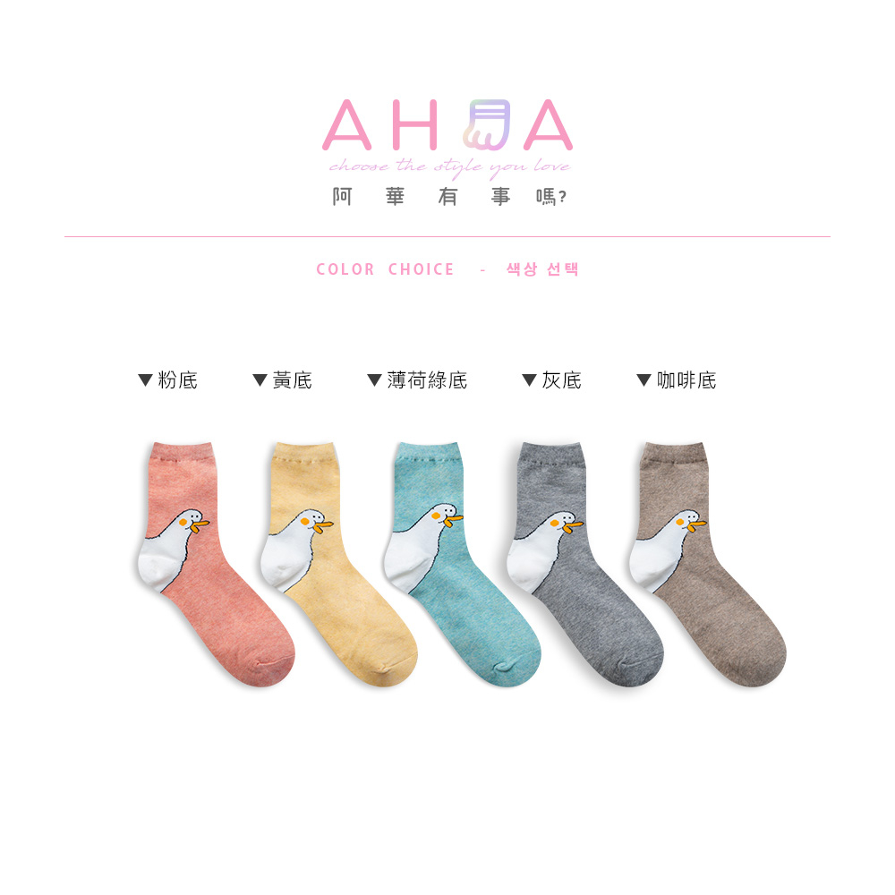 AHUA阿華有事嗎 韓國襪子 腳後跟探頭鴨鴨中筒襪K1848 韓妞必備 百搭純棉襪 韓系 日系 可愛 動物 鳥