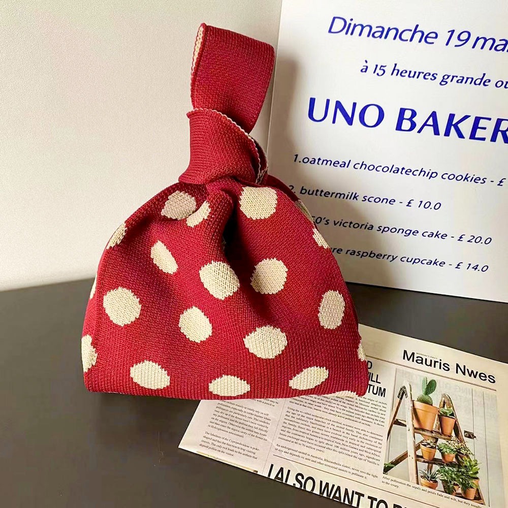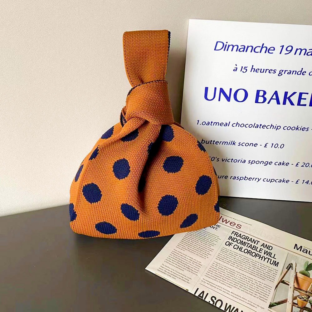 AHUA阿華有事嗎 韓系包包 復古圓點針織手提包 B0066 韓妞必備包 百搭配件 波點 袋子 手袋 肩包 日系