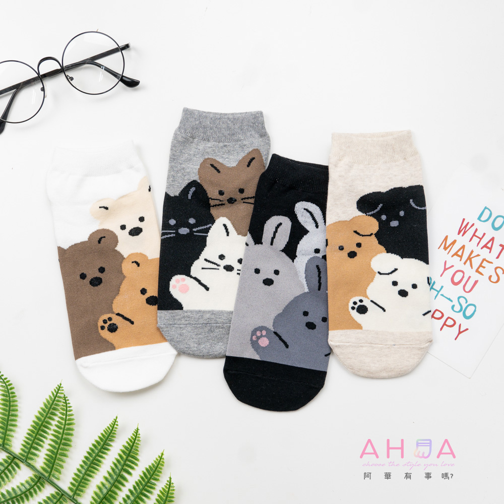 AHUA阿華有事嗎 韓國襪子 可愛三色動物集合短襪K1844 韓妞必備 百搭純棉襪 韓系 日系 可愛