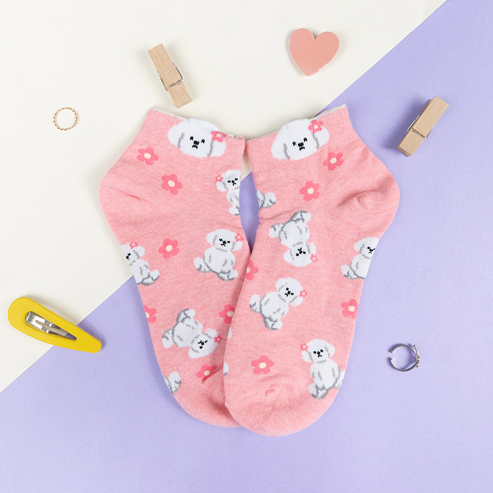AHUA阿華有事嗎 韓國襪子 立體耳朵花朵狗狗中短襪 K1697 襪子推薦 貴賓 比熊流行襪首選 貓咪 動物 可愛 日系