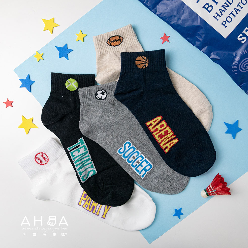 AHUA阿華有事嗎 韓國襪子 球類運動男生短襪 男襪 K1767 正韓男襪 潮流襪 百搭純棉襪 文青 刺繡 運動風