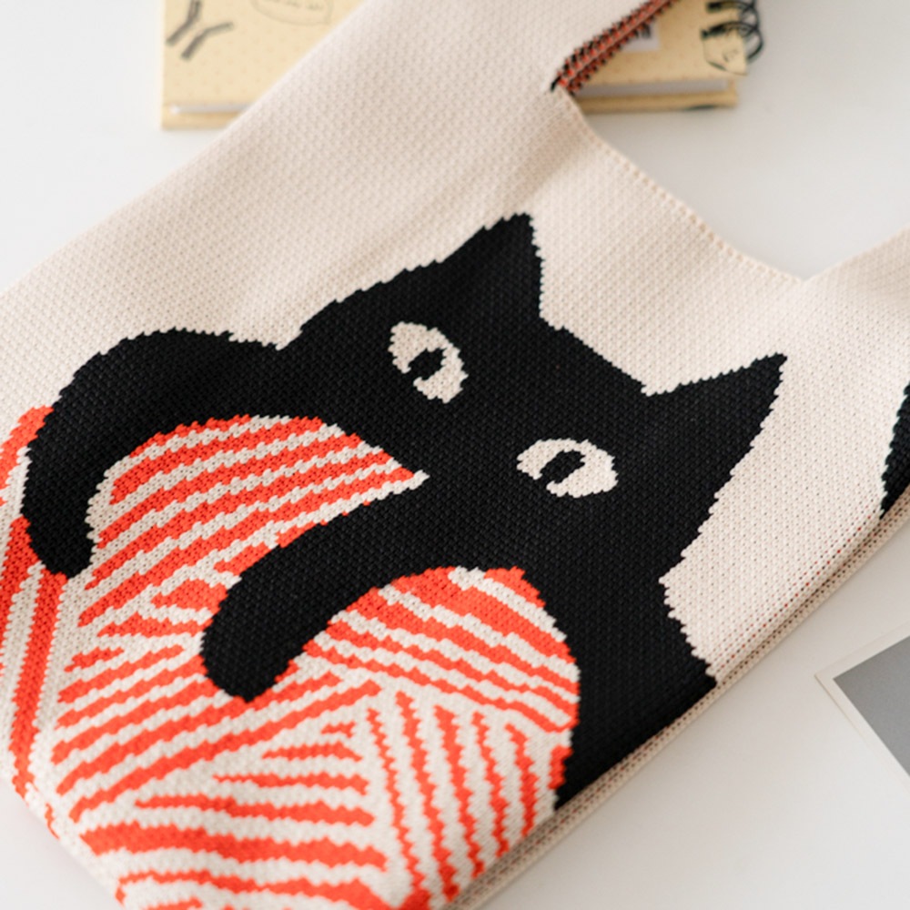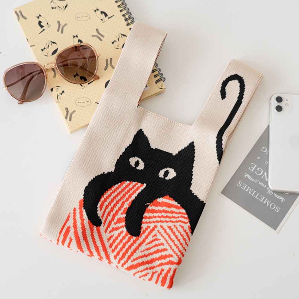 AHUA阿華有事嗎 韓系包包 貓咪趴線球針織手提包 B0079 韓妞必備包 百搭配件 包包 袋子 手袋 肩包 日系