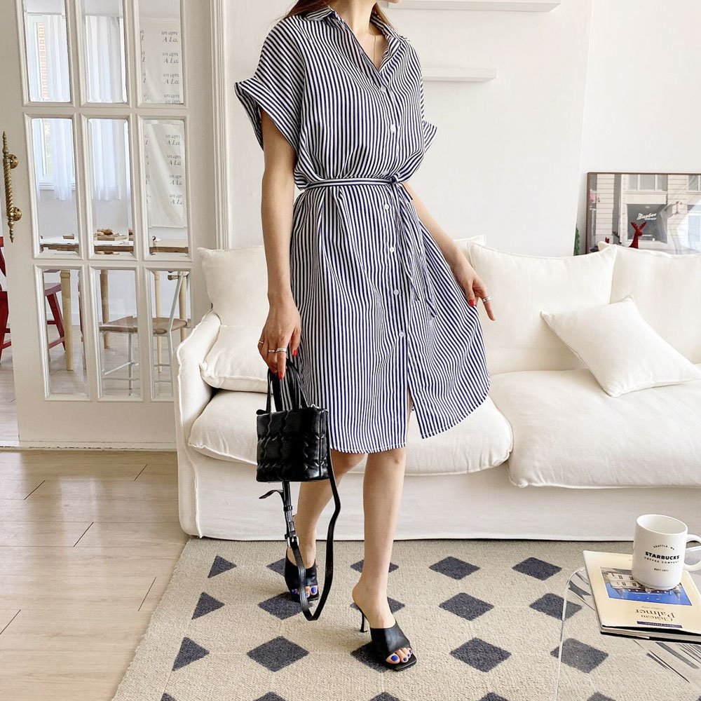 AHUA阿華有事嗎 正韓女裝休閒 百搭減齡直條長版短袖襯衫 C2794 百搭 韓妞必備 可愛 日系 鹽系
