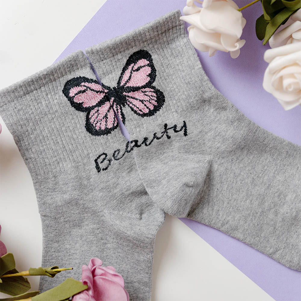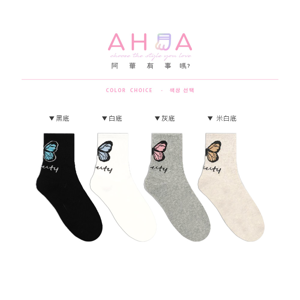 AHUA阿華有事嗎 韓國襪子 腳後跟金蔥蝴蝶中筒襪 K1779 正韓少女襪 韓妞必備 百搭純棉襪 可愛日系 短襪 森林系