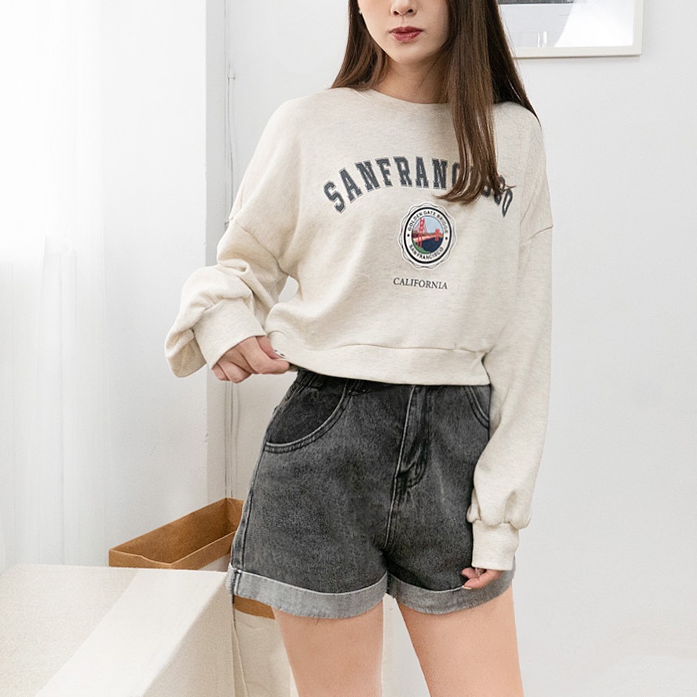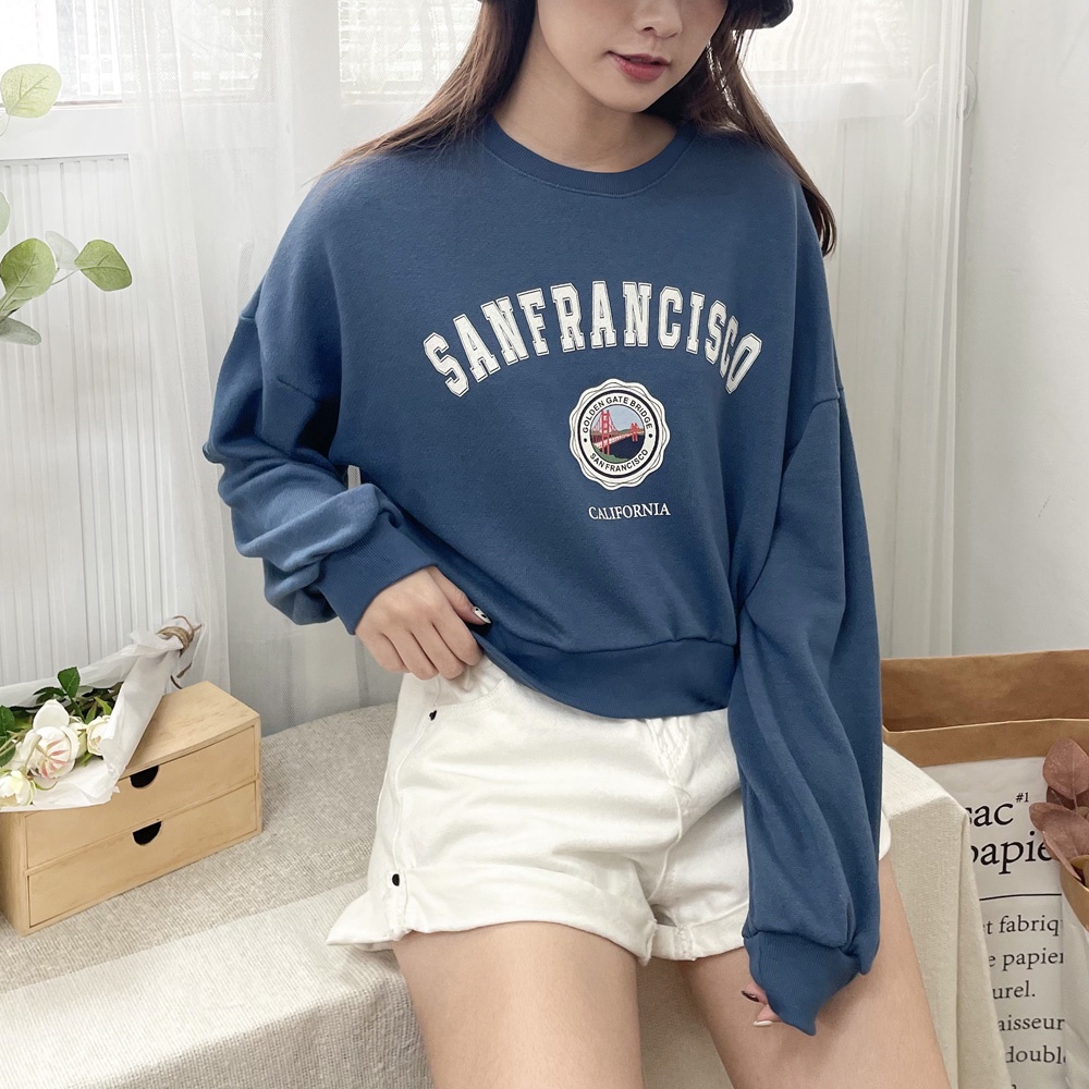AHUA阿華有事嗎 正韓女裝 舊金山大橋短版長袖T恤 C2620 大學踢 韓妞必備 韓國服飾 韓國直送 韓國代購