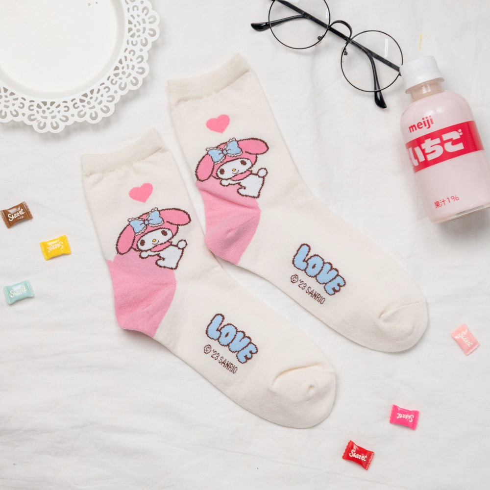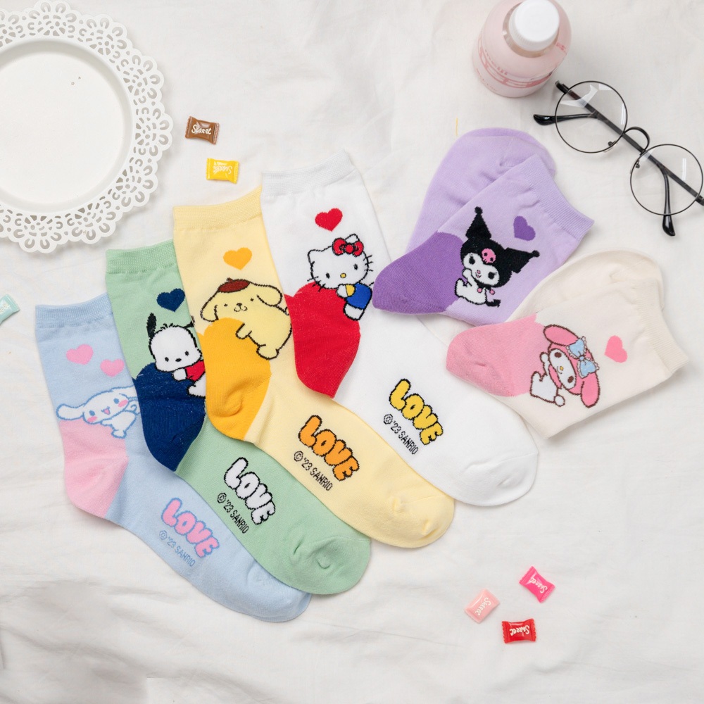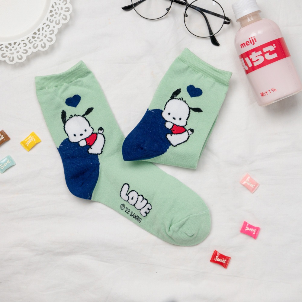 AHUA阿華有事嗎 韓國襪子 三麗鷗擁抱腳後跟愛心中筒襪 K1876 韓妞必備 百搭純棉襪 卡通人物 日系 可愛