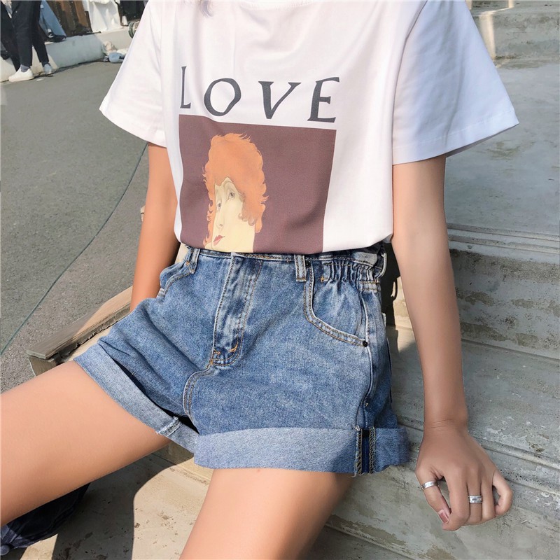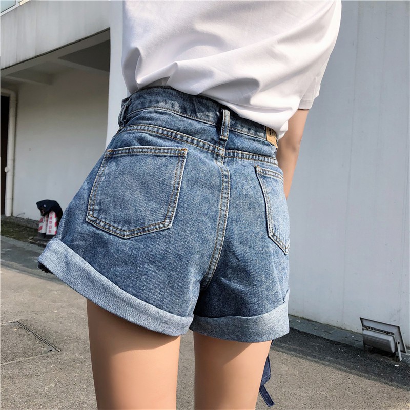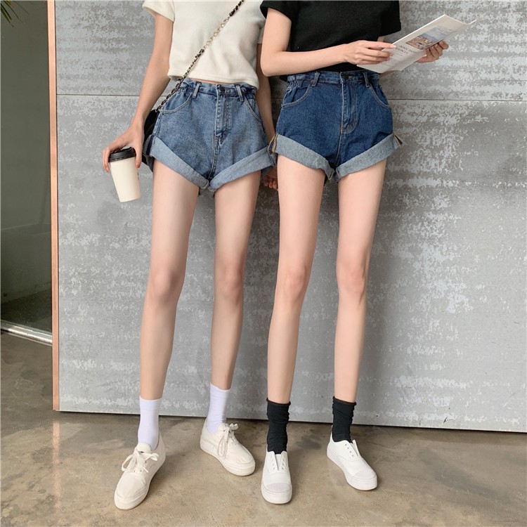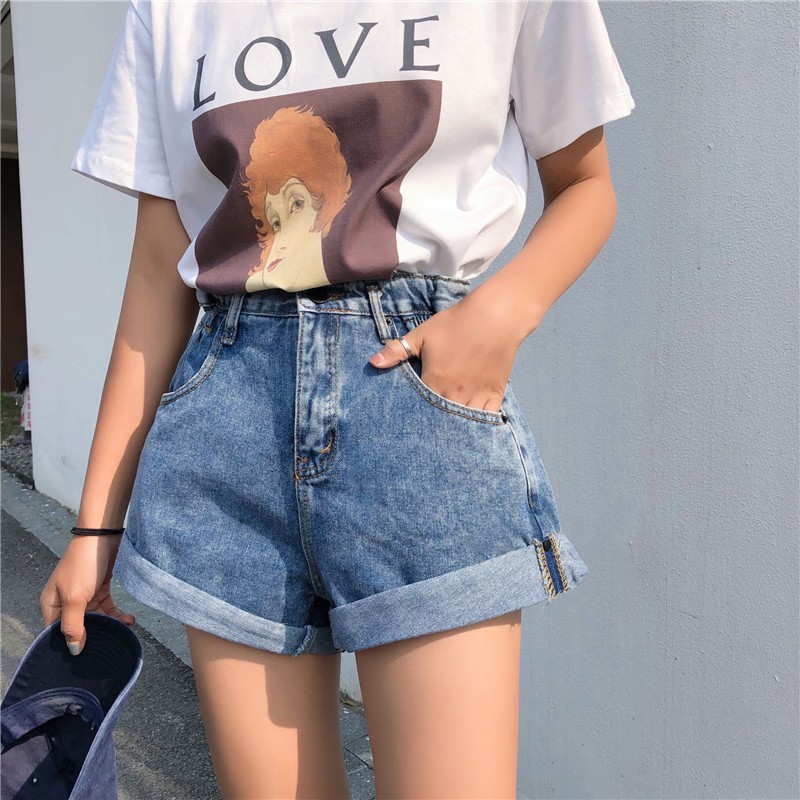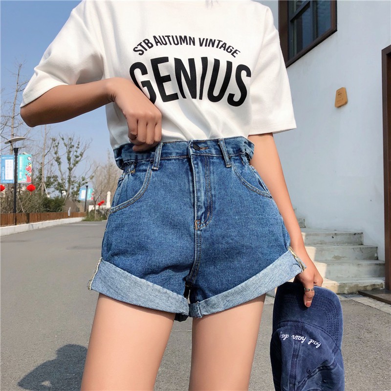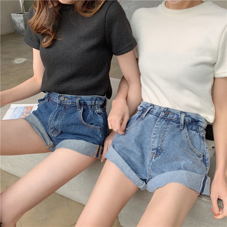 AHUA阿華有事嗎 韓系側邊鬆緊牛仔高腰短褲 2色售【C0659】四季百搭女裝 簡約 休閒短褲 韓妞必備 顯瘦 牛仔褲