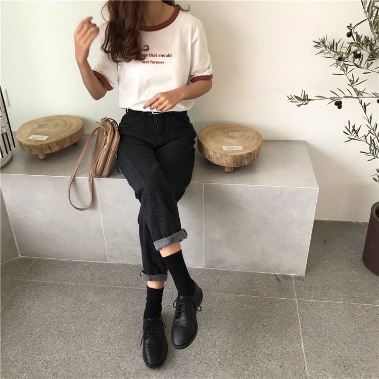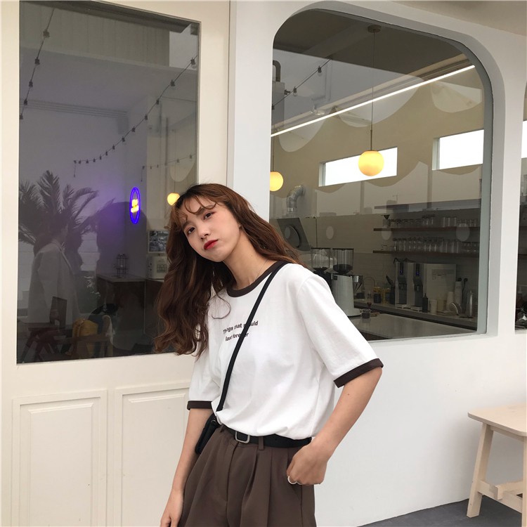 AHUA阿華有事嗎 韓系滾邊字母印花短袖T恤 2色 C0676 四季百搭女裝 韓妞必備上衣【滿額免運】
