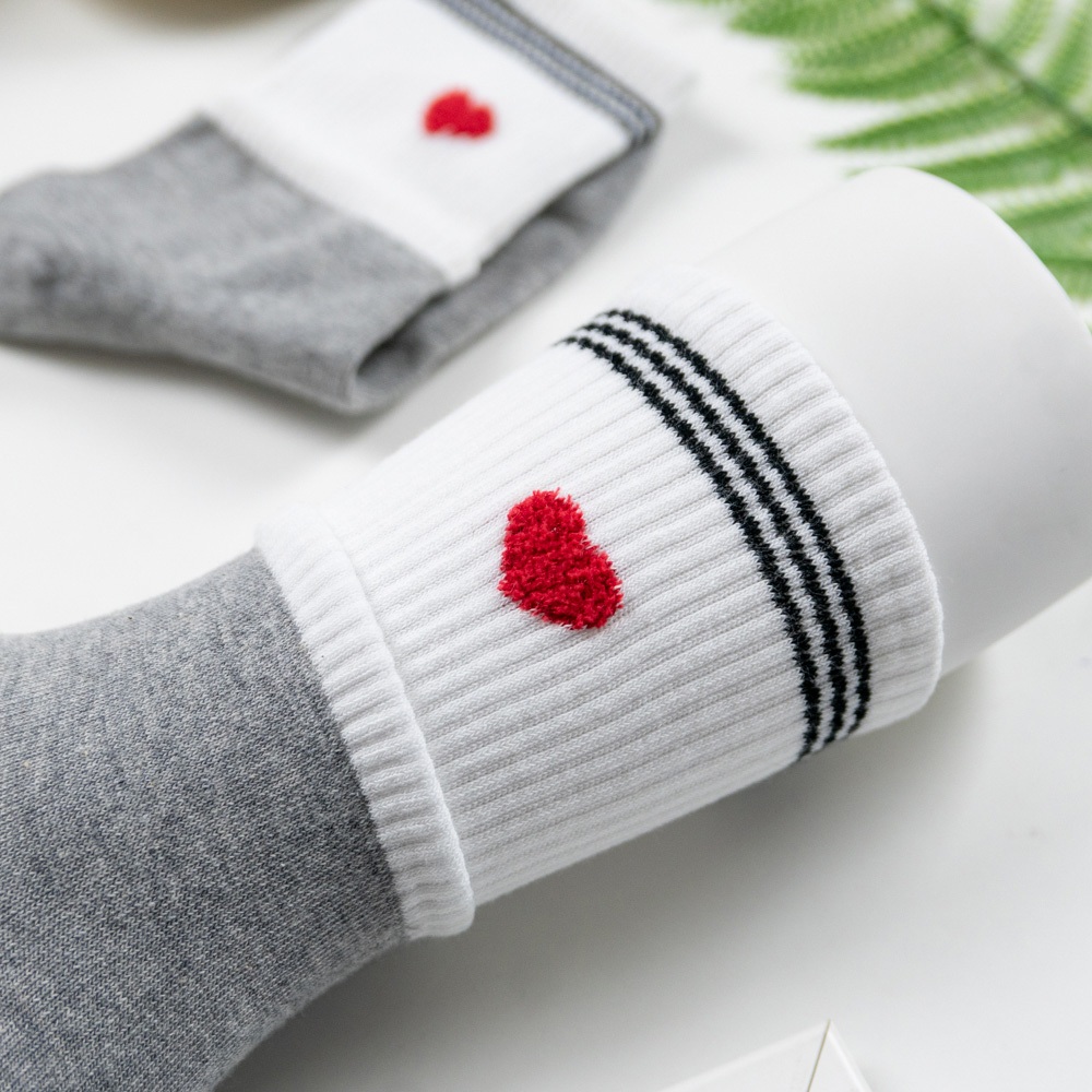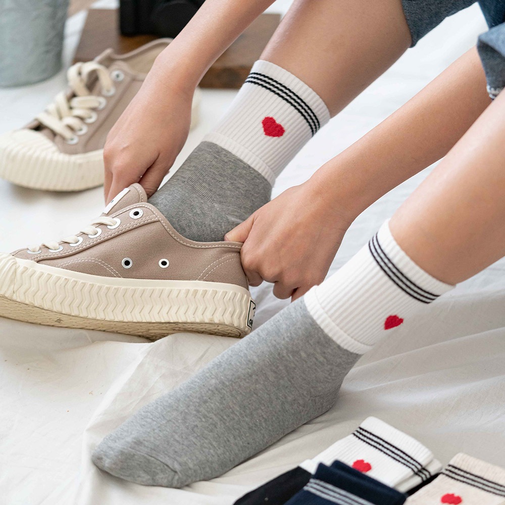 AHUA阿華有事嗎 韓國襪子 雙層襪口三線條毛毛愛心中筒襪 K1904 韓妞必備 百搭純棉襪 日系 可愛
