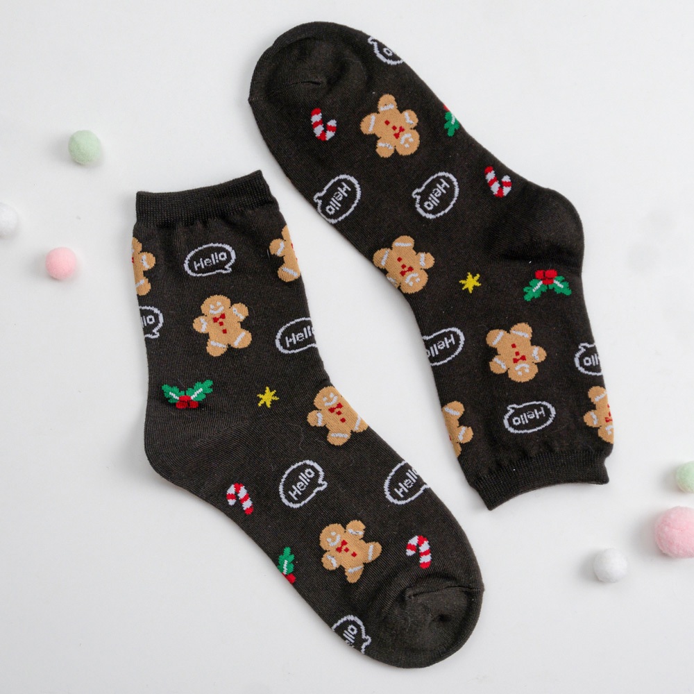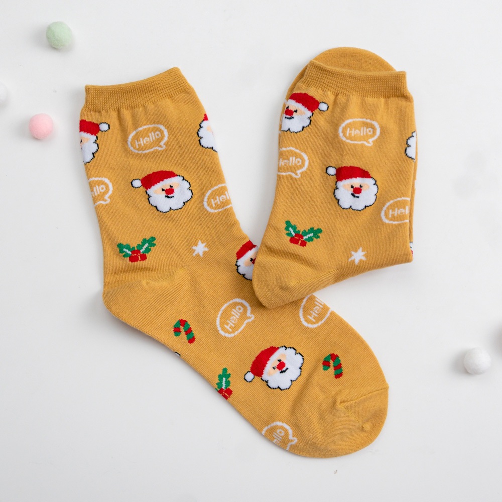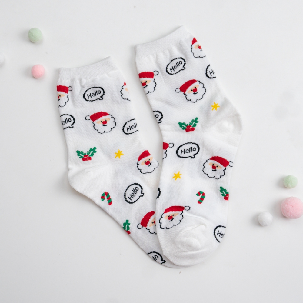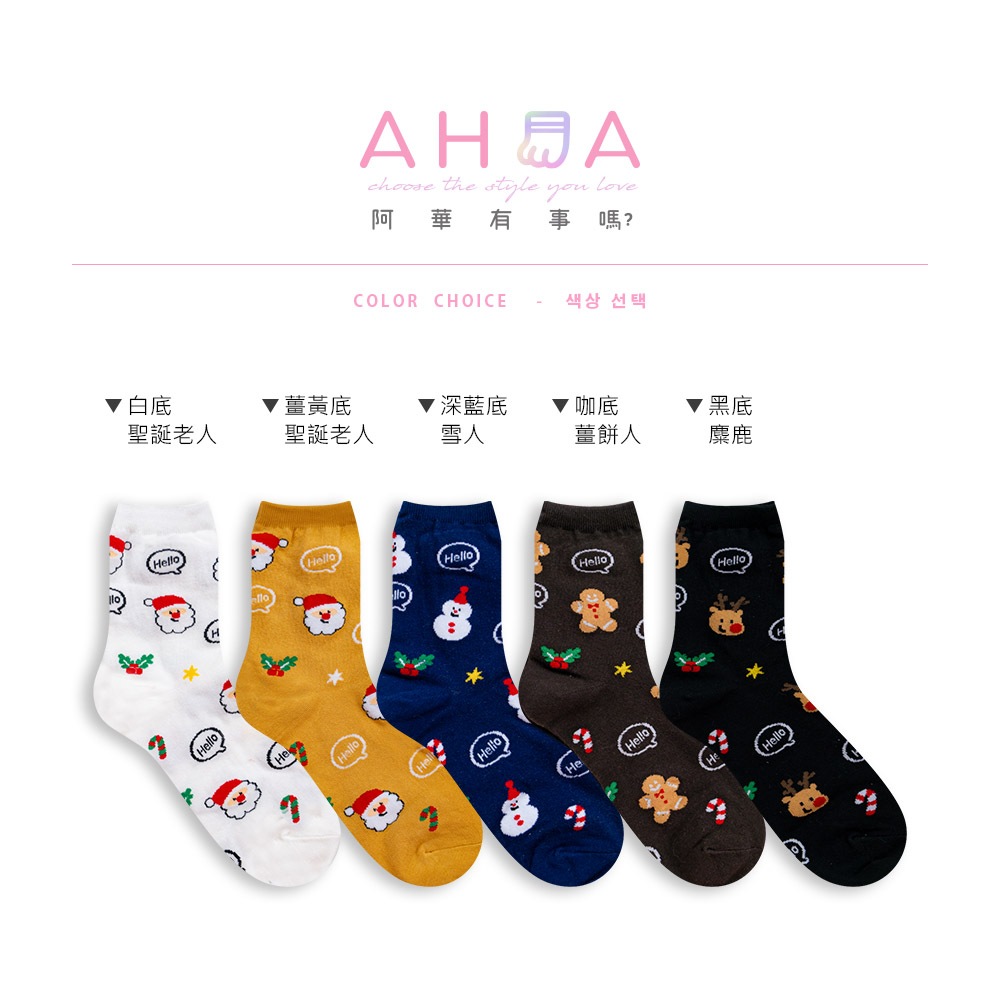 AHUA阿華有事嗎 韓國襪子 滿版Hello聖誕人物小圖中筒襪K1916 韓妞必備 百搭純棉襪 聖誕襪 交換禮物