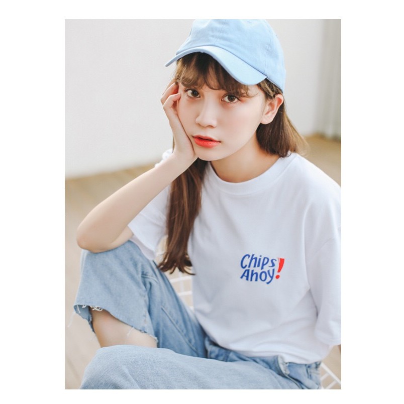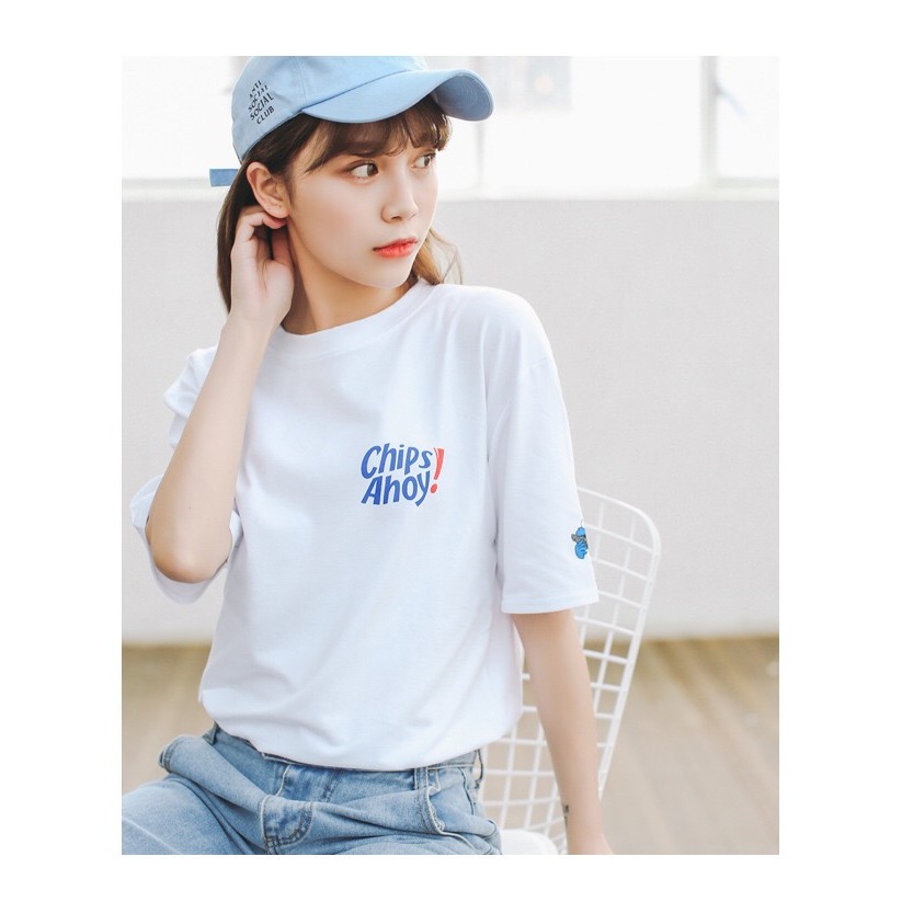 AHUA阿華有事嗎 韓系女裝 翻玩巧克力餅乾英文字短袖T恤【C0017】韓系穿搭 韓妞必備 基本款 素面大學T 上衣