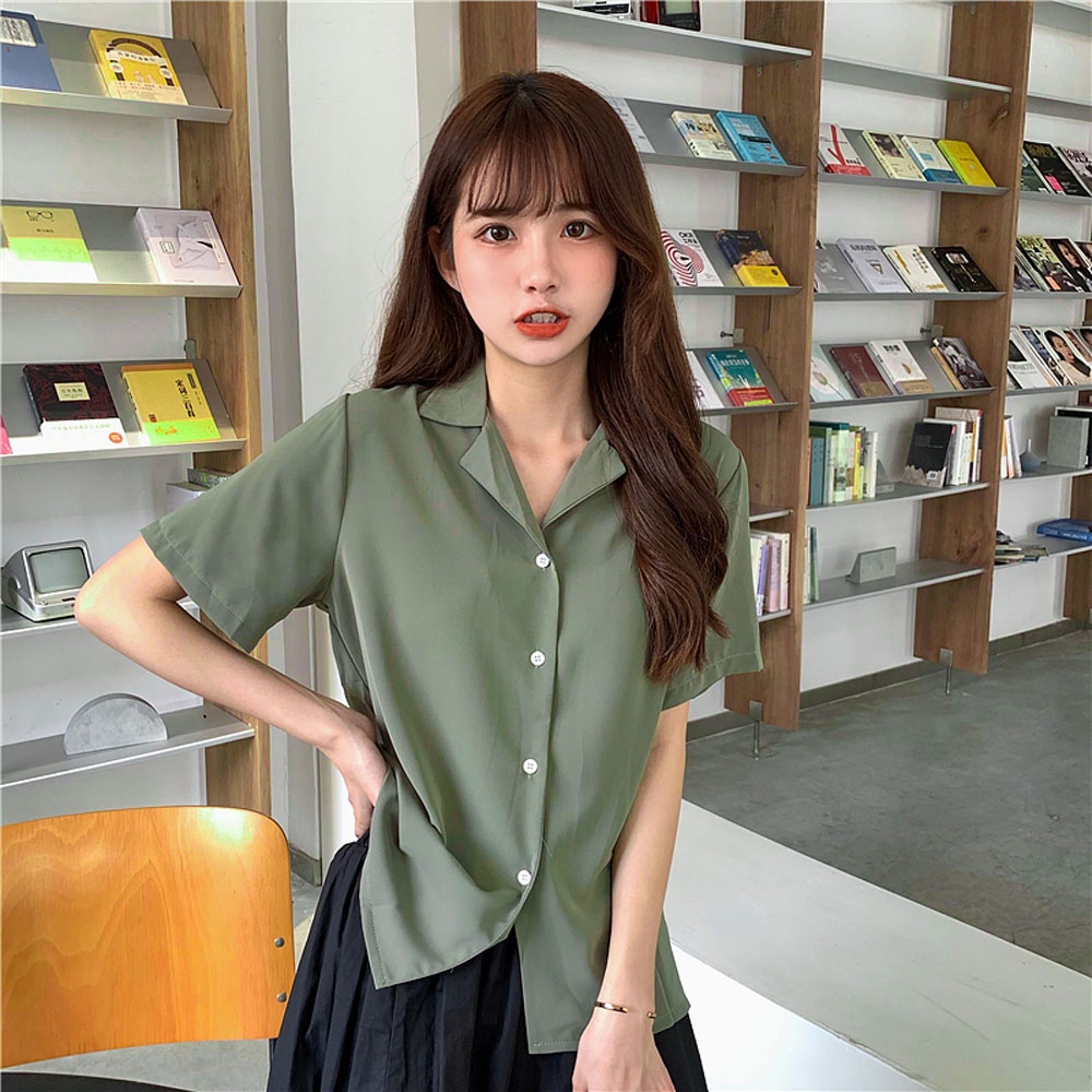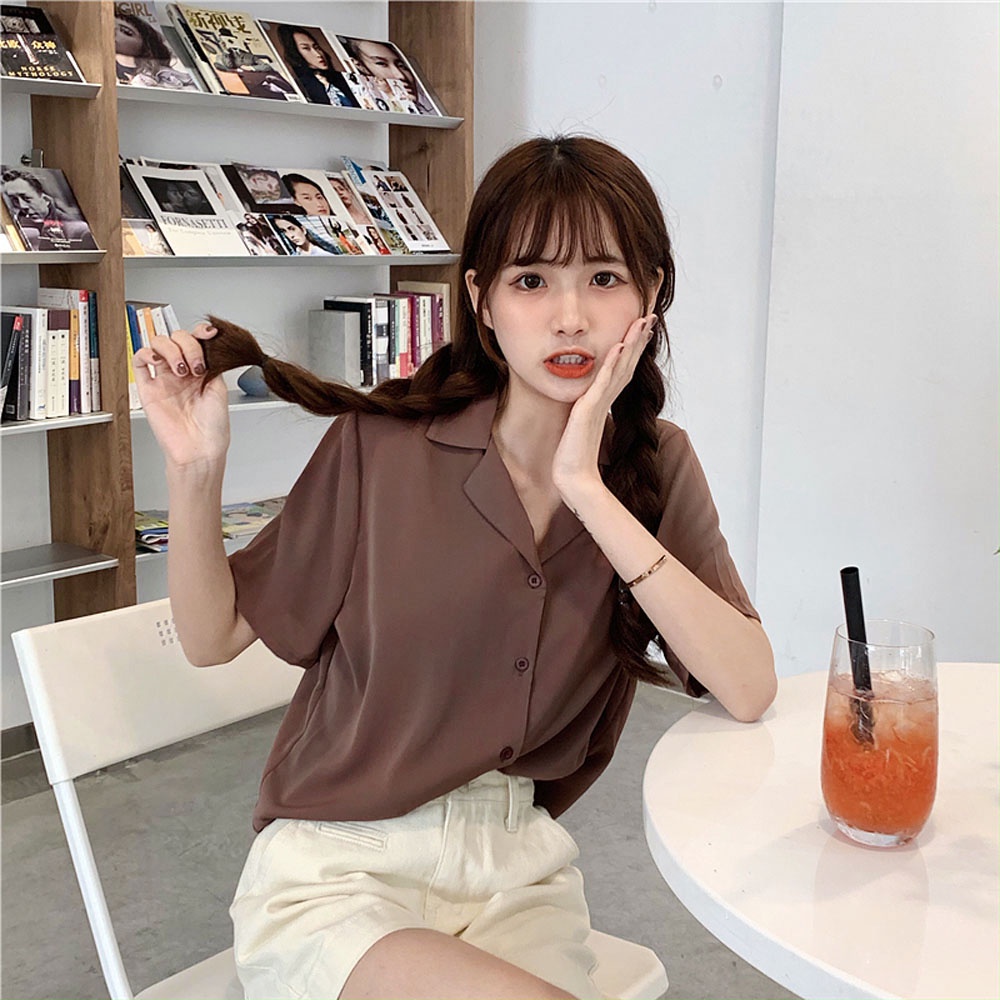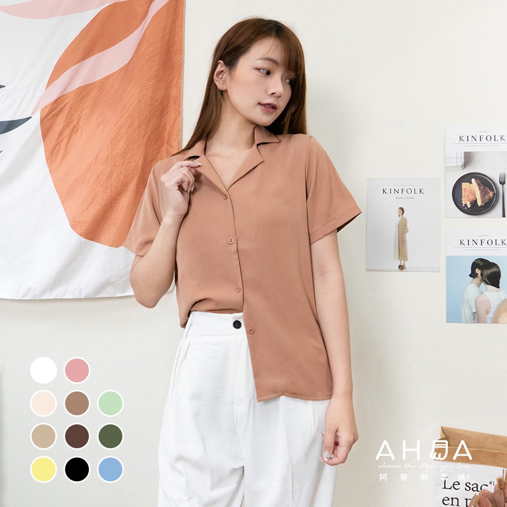 AHUA阿華有事嗎 韓系女裝 氣質v領純色襯衫【C1798】顯瘦 可愛 素色 文青 實穿 休閒 百搭 韓妞必備 短袖上衣