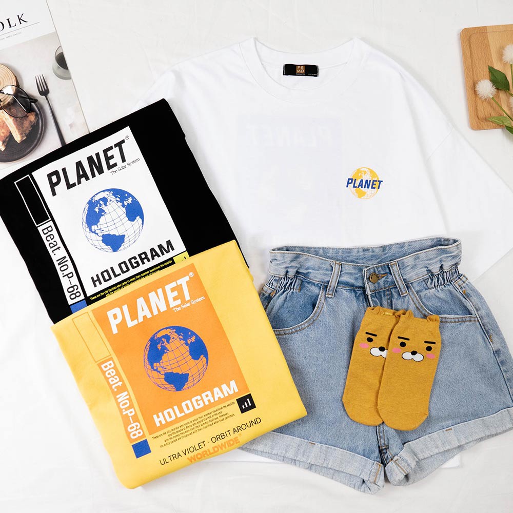 AHUA阿華有事嗎 韓國女裝 Planet地球印刷短袖T恤 短袖上衣【C1043】正韓直送 韓妞必備 百搭 顯瘦 基本款