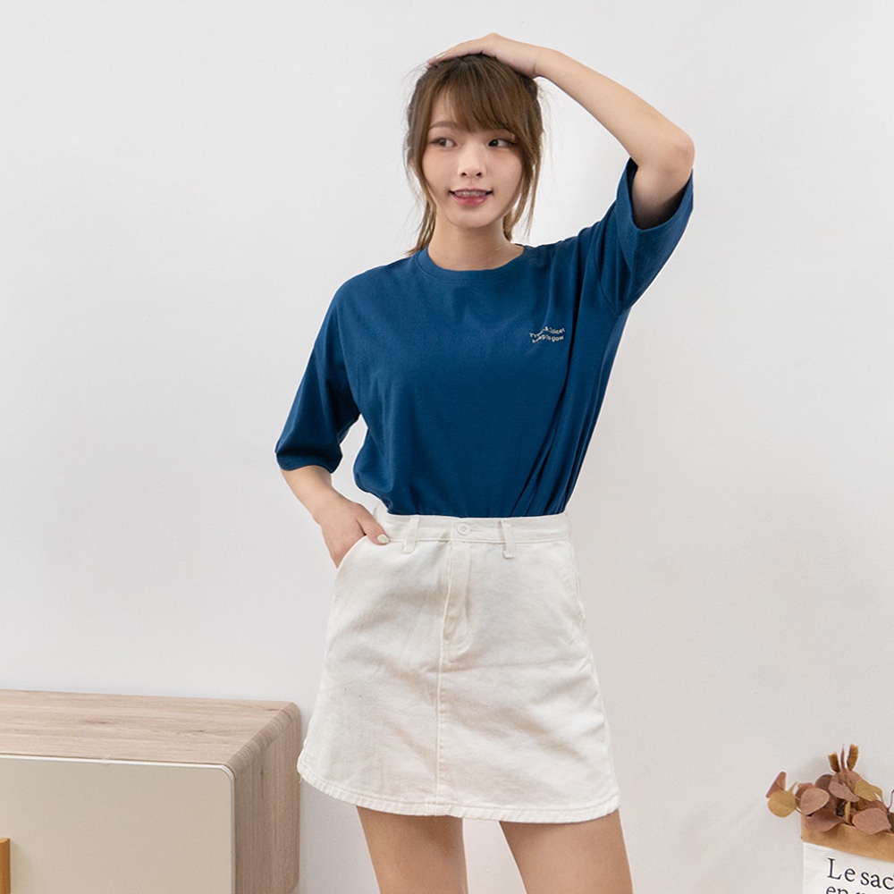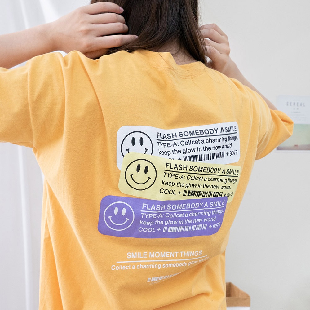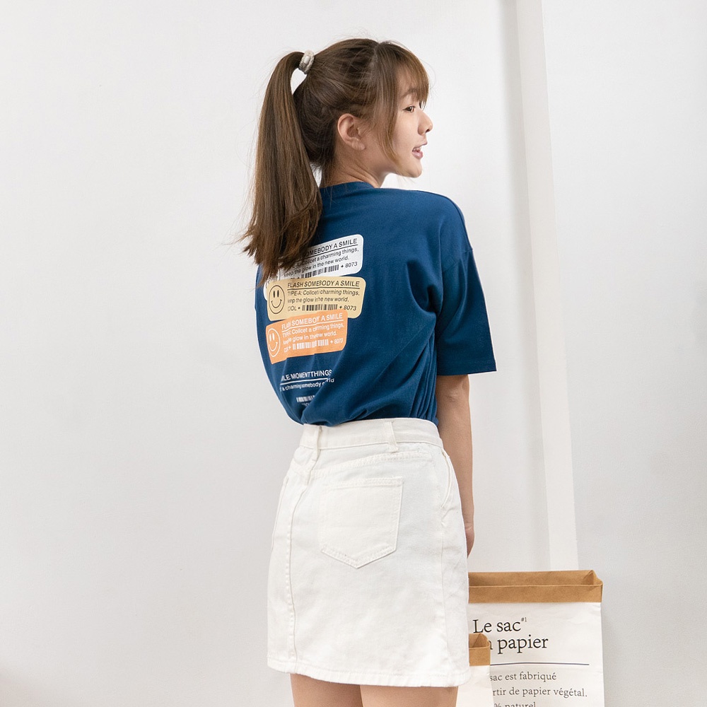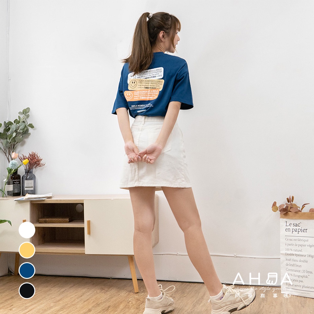 AHUA阿華有事嗎 韓國女裝 微笑英文標籤短袖T恤 短袖上衣 C1039 正韓直送 韓妞必備 百搭顯瘦基本款