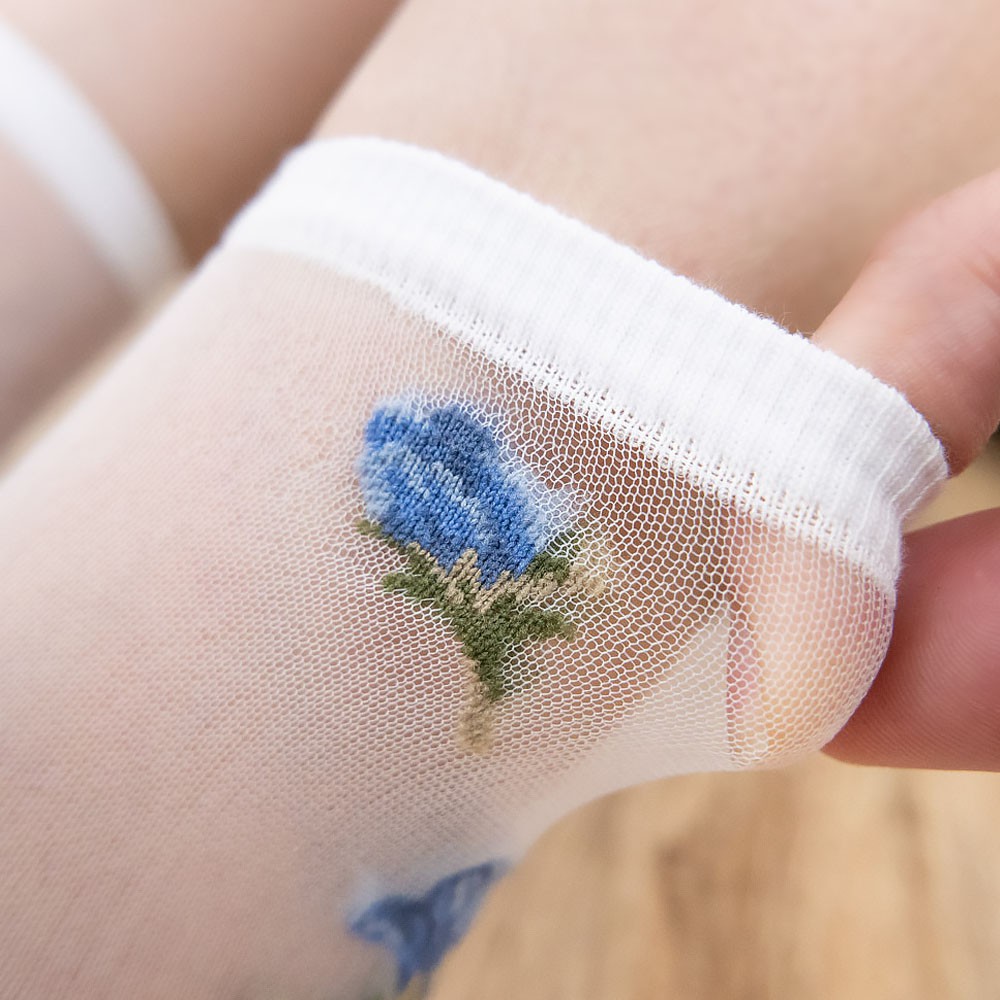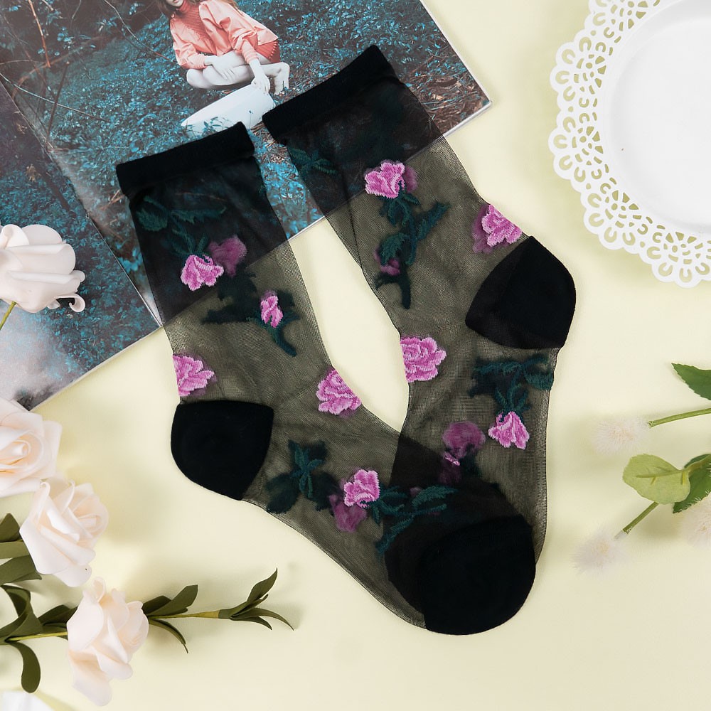AUHA阿華有事嗎 韓國襪子 透膚滿版復古花朵中筒襪【K1212】 少女襪 韓妞必備長襪 百搭純棉襪