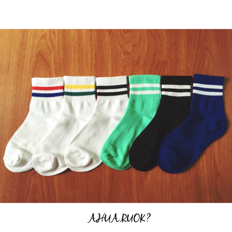 AHUA阿華有事嗎 韓版復古襪子 雙條紋運動中筒襪 S0201 男女款 雙槓百搭基本款 韓妞必備長襪