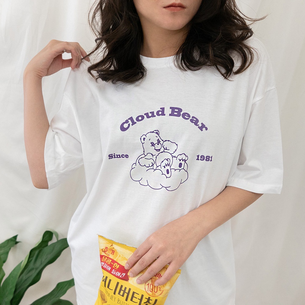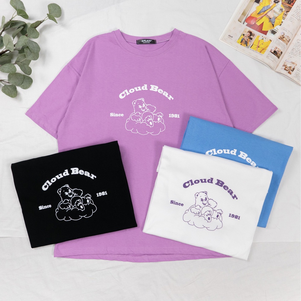 AUHA阿華有事嗎 韓國女裝 雲朵熊字母短袖T恤【C1898】韓妞必備 百搭顯瘦基本款