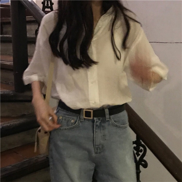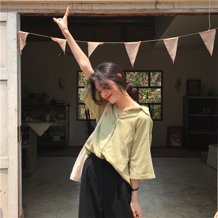 阿華有事嗎AUHA 韓系女裝 簡約純色寬短袖襯衫【C1136】素色 寬鬆 輕薄 韓妞必備 百搭 顯瘦 基本款 T袖上衣