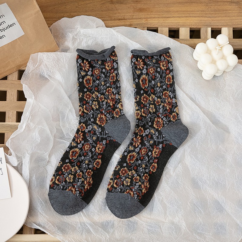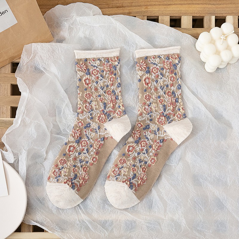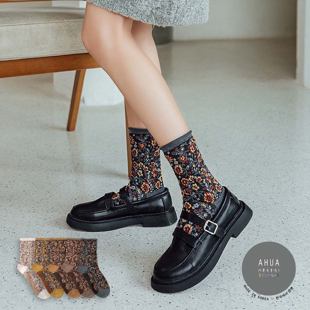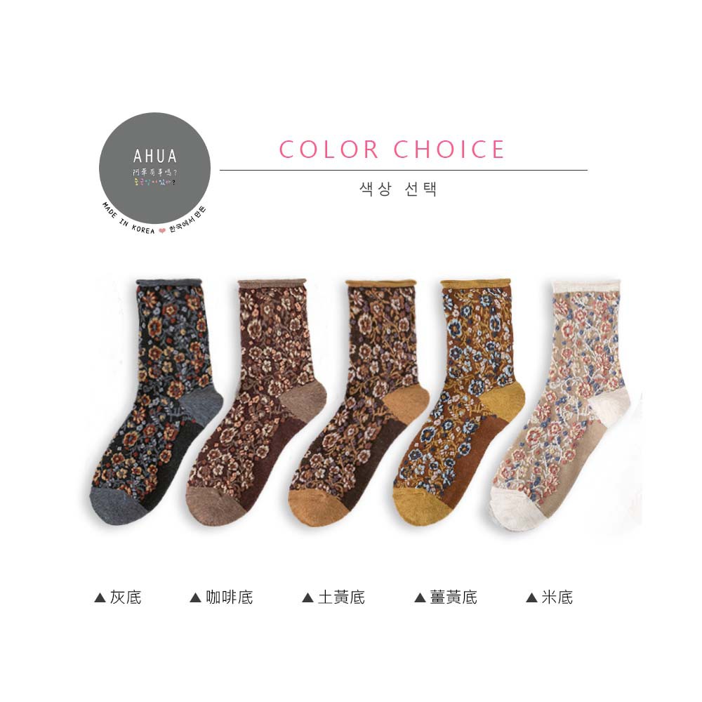 阿華有事嗎AHUA 日系襪子 無痕捲邊立體碎花中筒襪 S0359 少女襪 韓妞必備中筒襪 百搭純棉襪